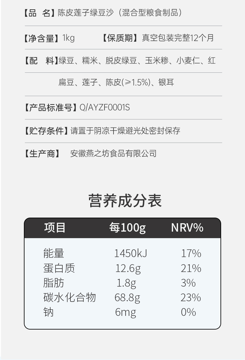 【商城专属】燕之坊陈皮莲子绿豆沙1kg