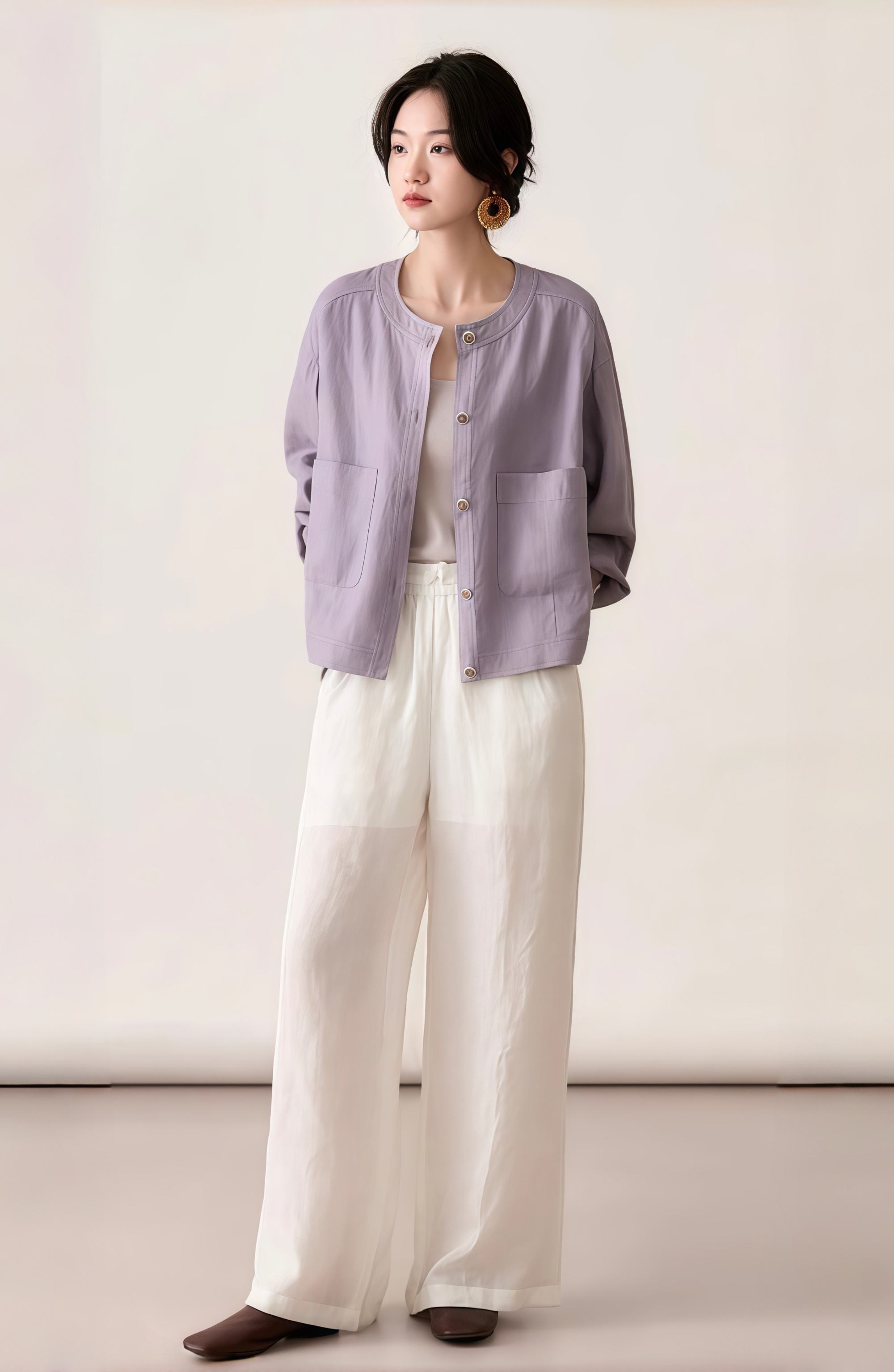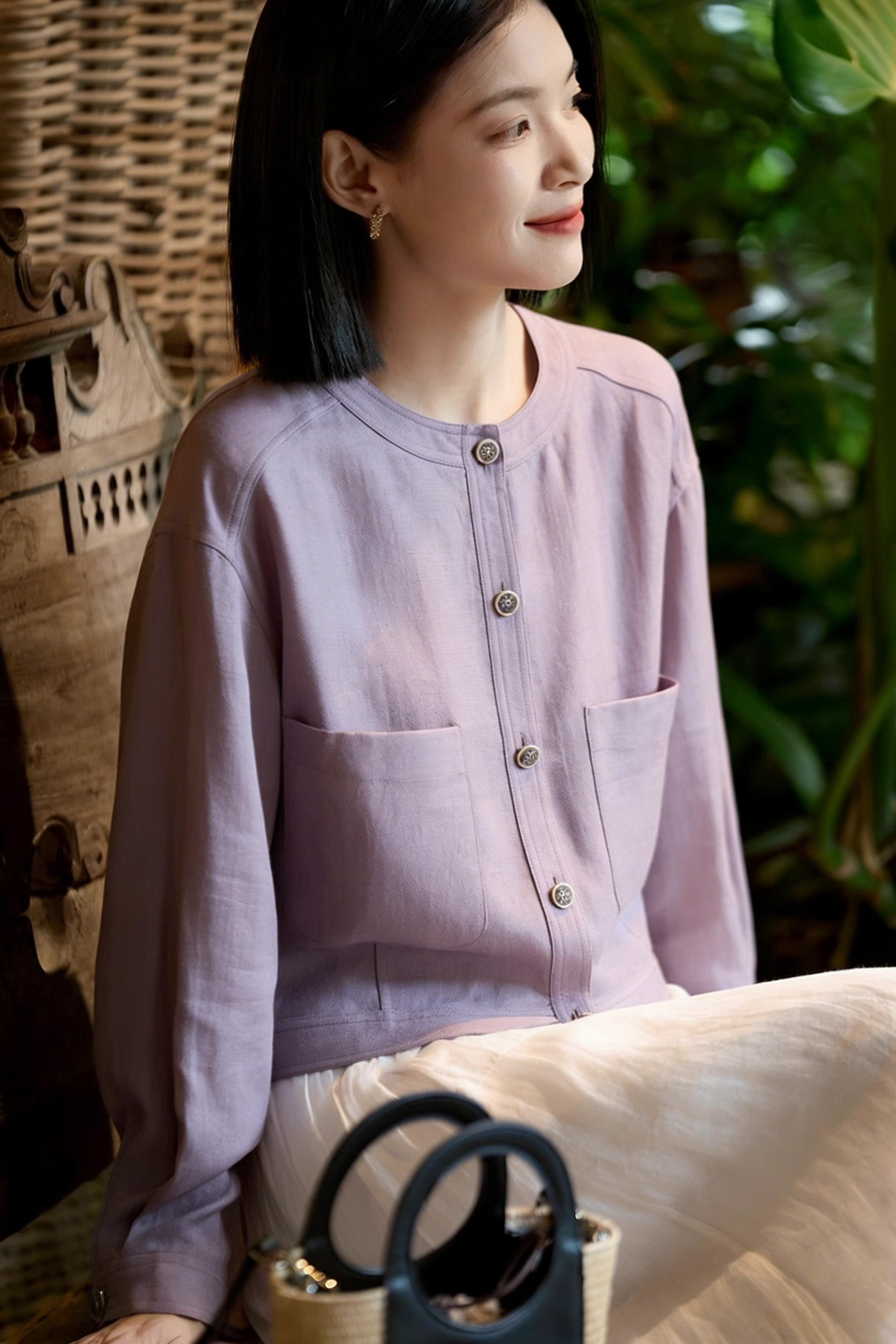 天丝醋酸圆领短外套,穿醋酸的人,总自带一种优雅的松弛感!自带“空调纤维”属性,轻盈透气,吸湿速干,持续清爽一整天!