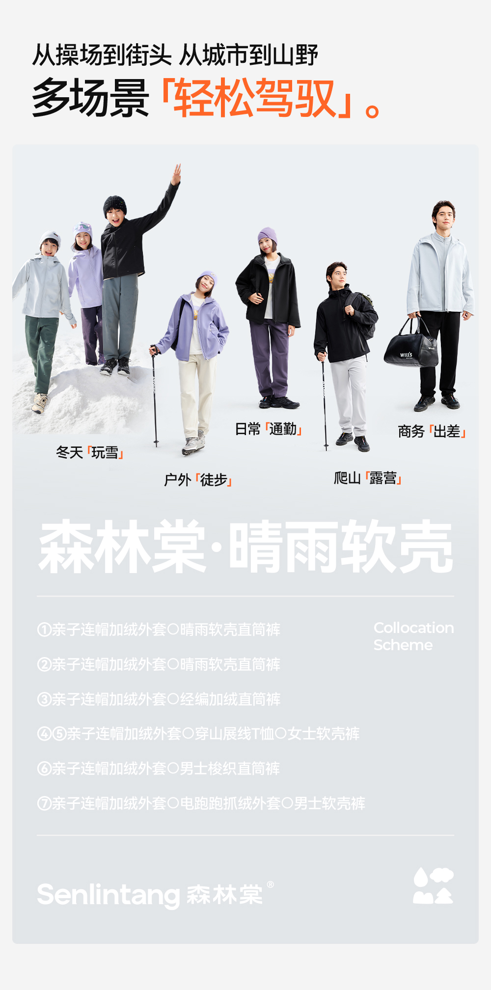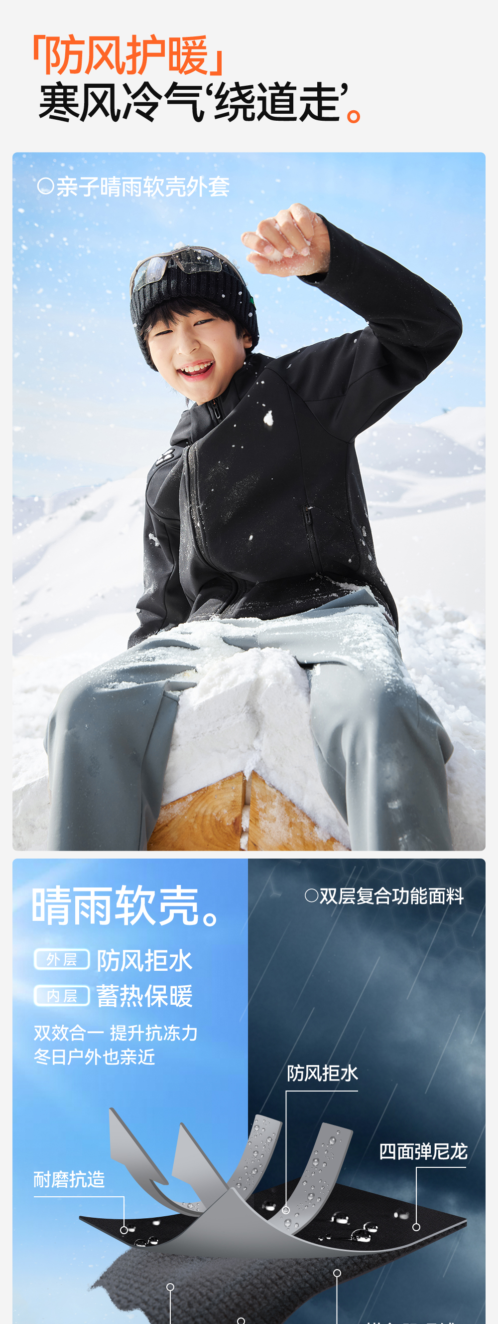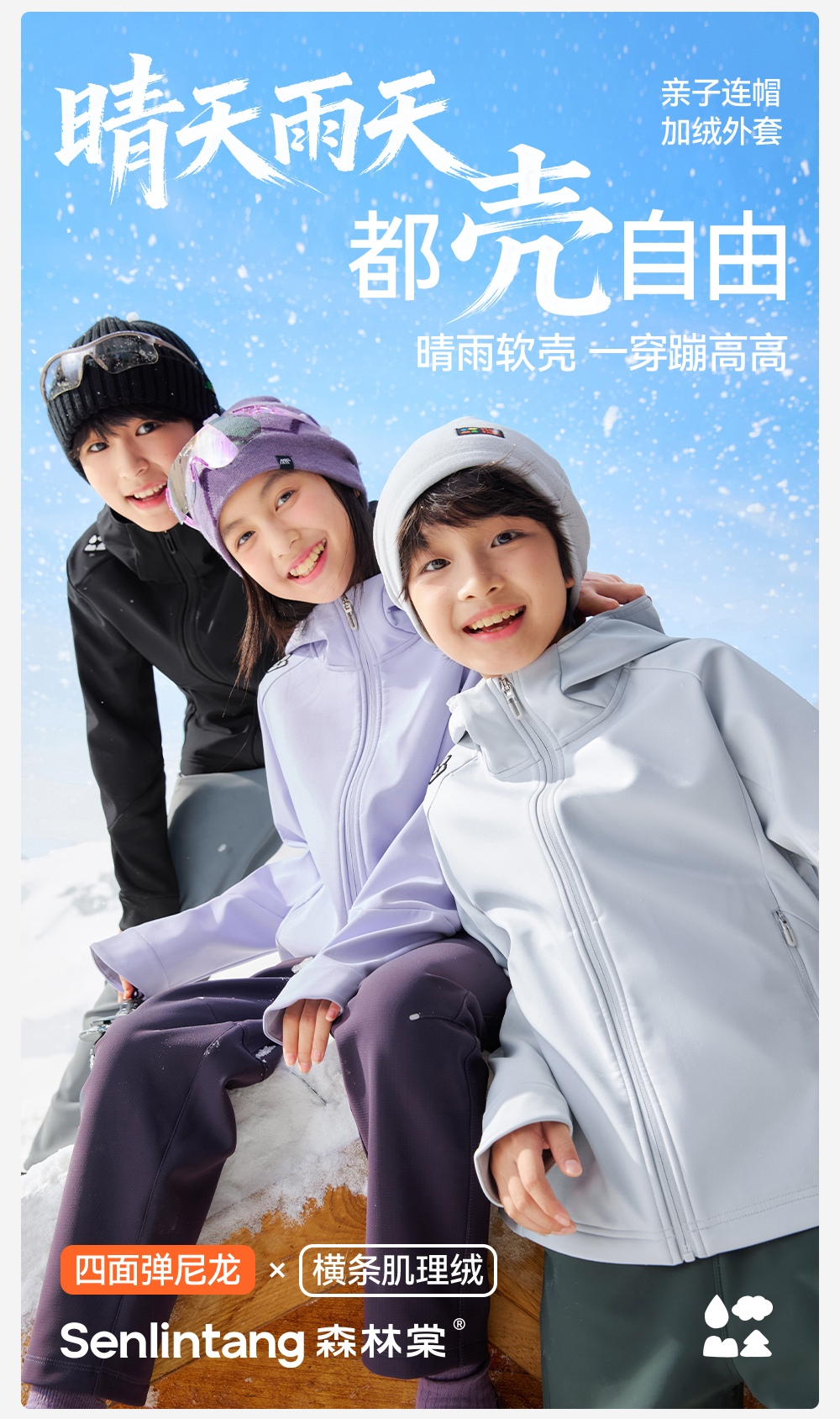 【全家连帽软壳外套】森林棠25冬季新款户外防风防泼水亲子款保暖外套81353158