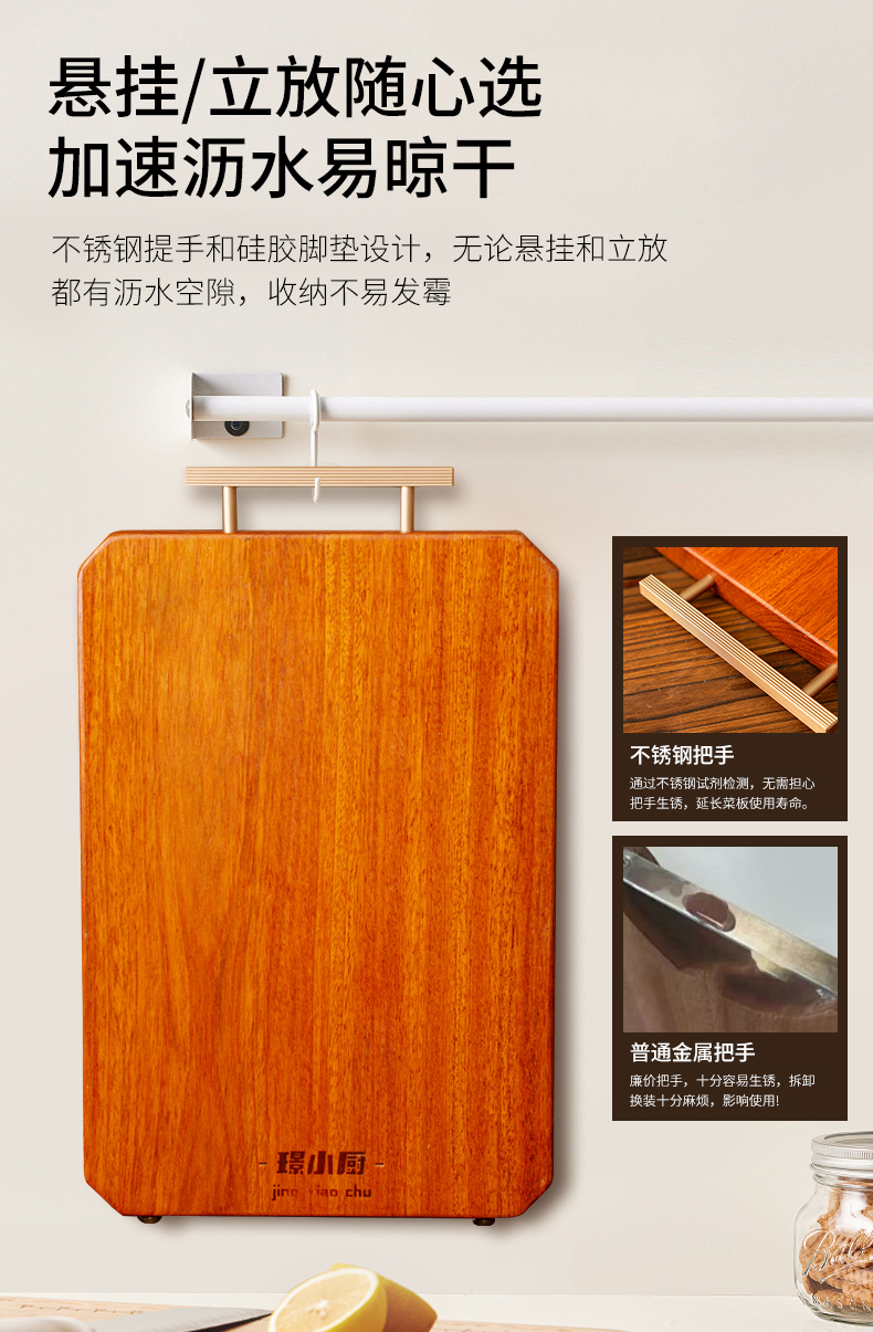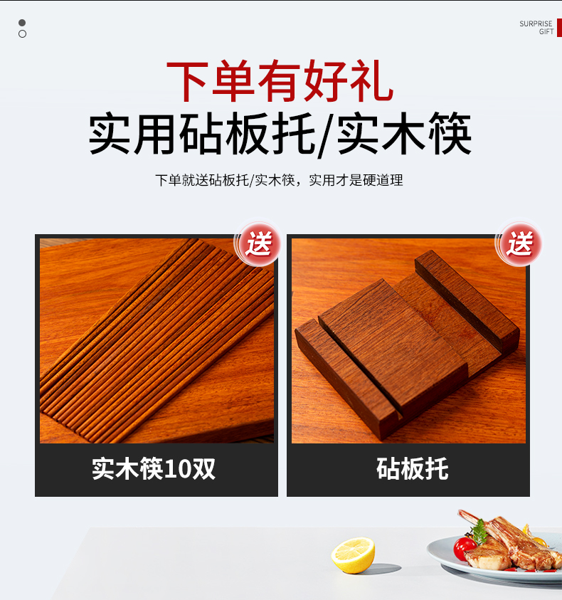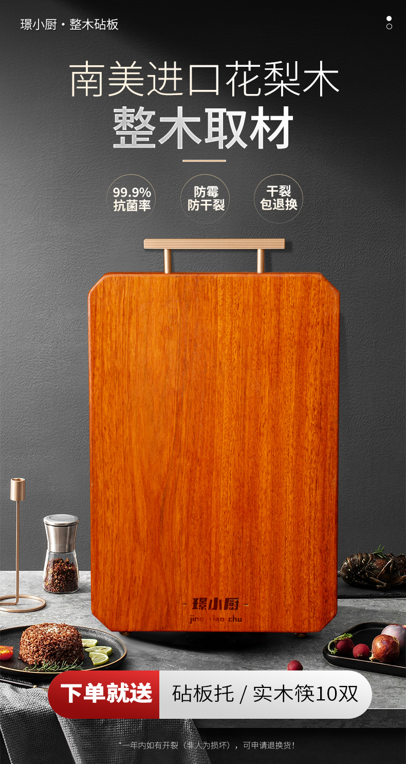 南美进口花梨木·整木砧板 | 不易发霉,抗菌率高达99.9%,赠送砧板托1只或实木筷10双
