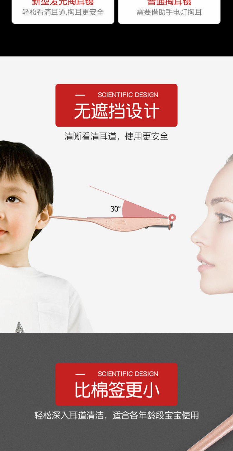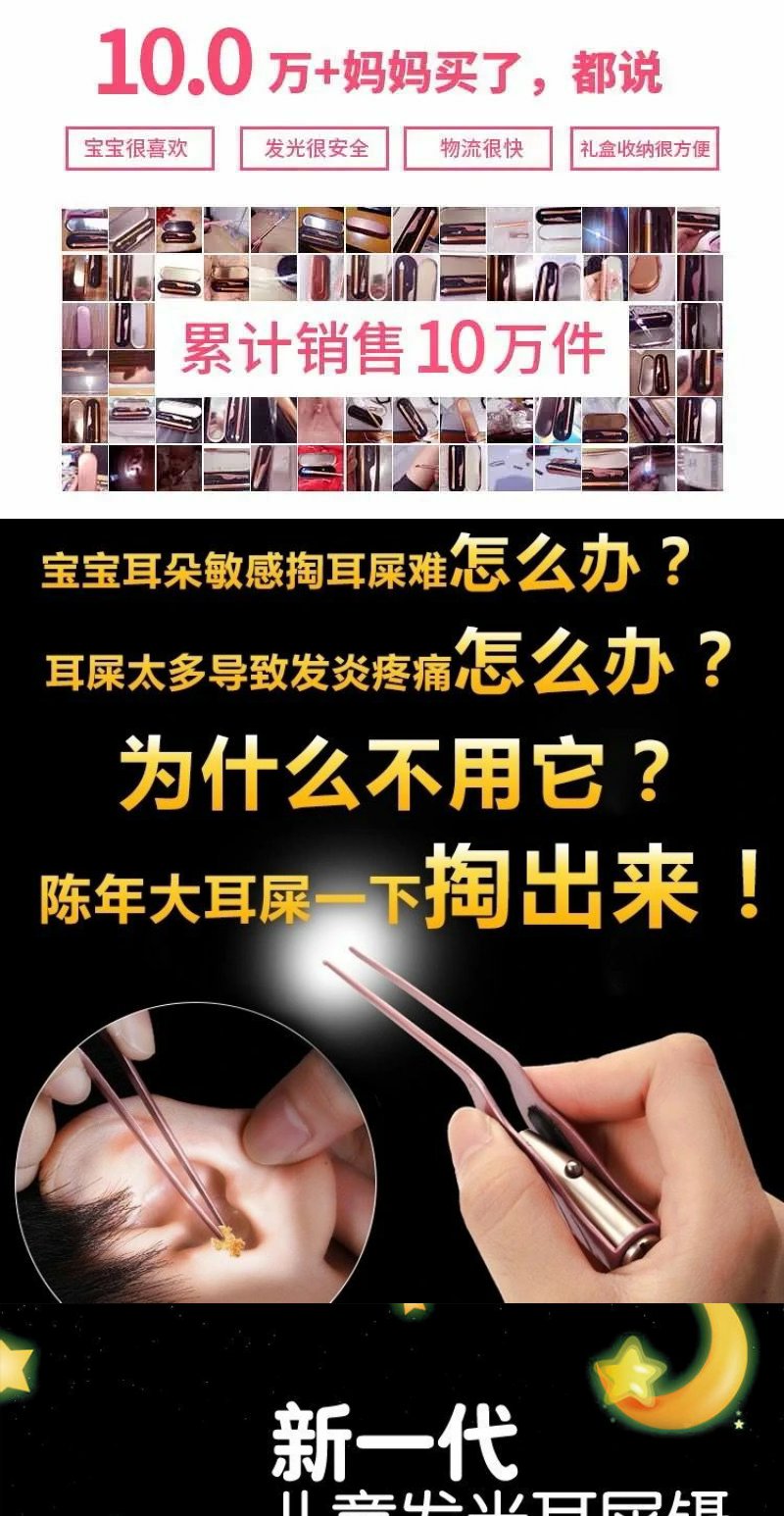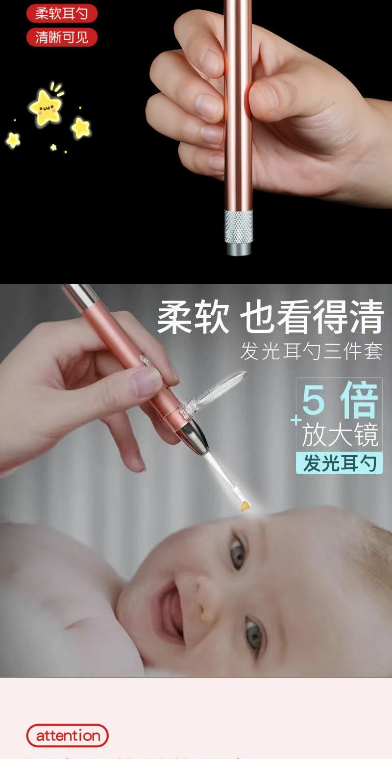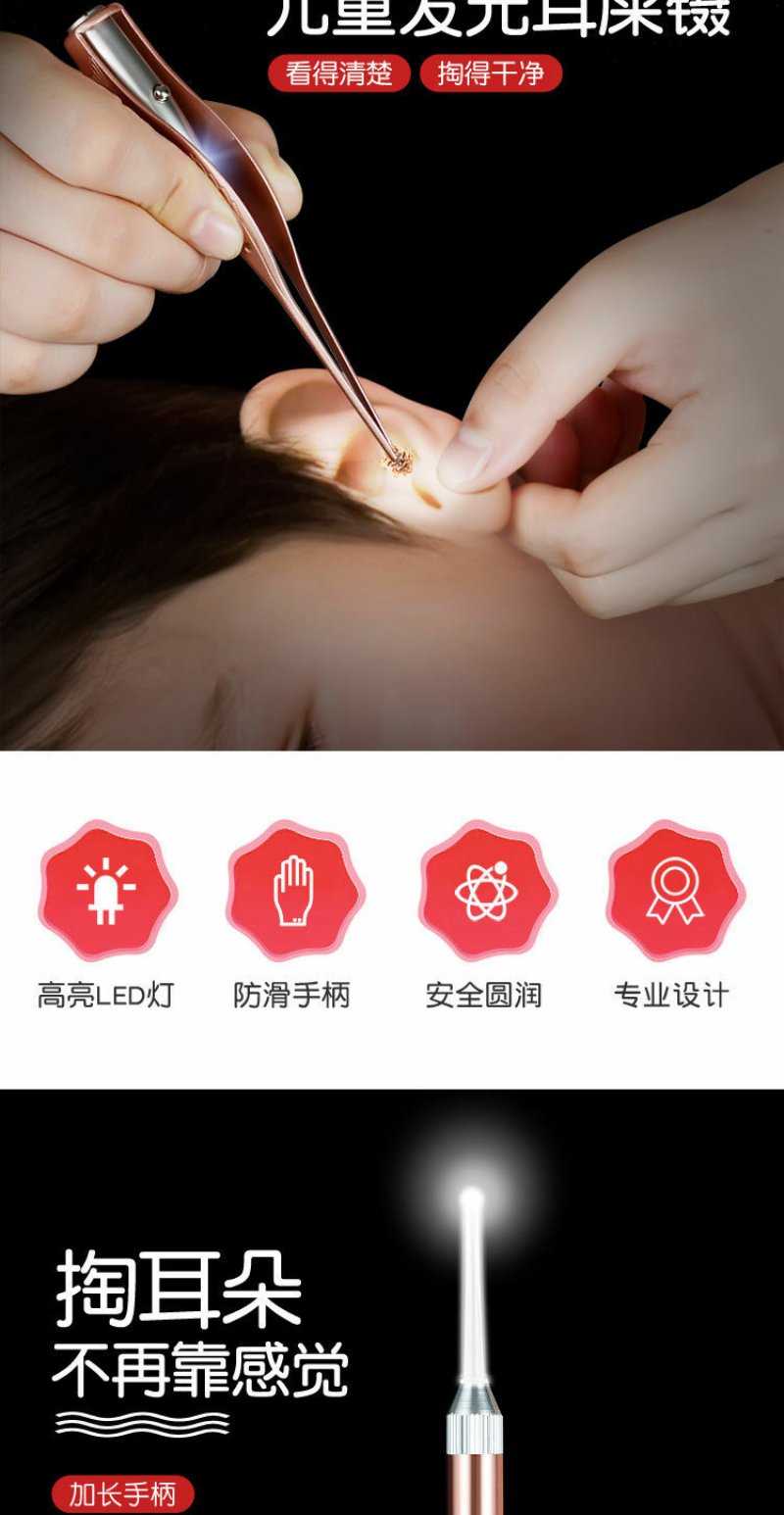 硅胶发光耳勺掏耳神器挖耳勺儿童成人挖耳朵耳屎镊子带灯采耳套装