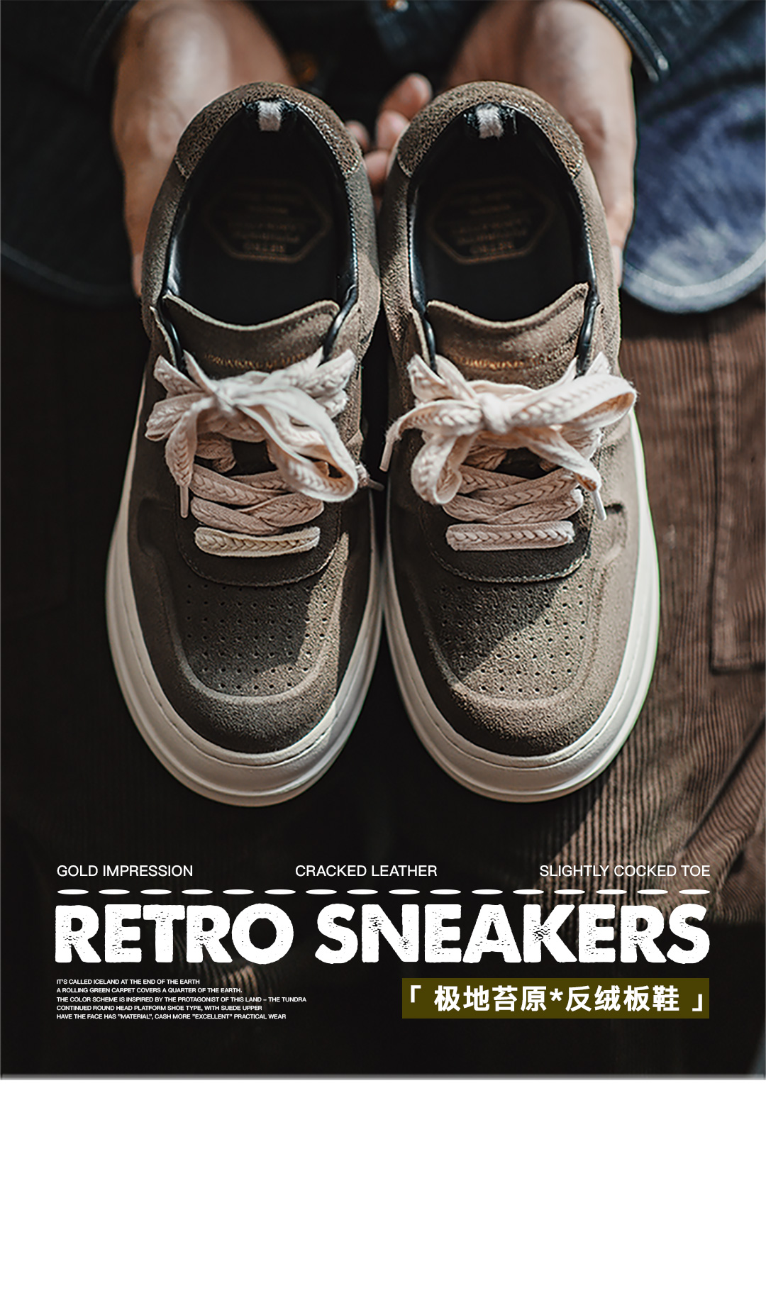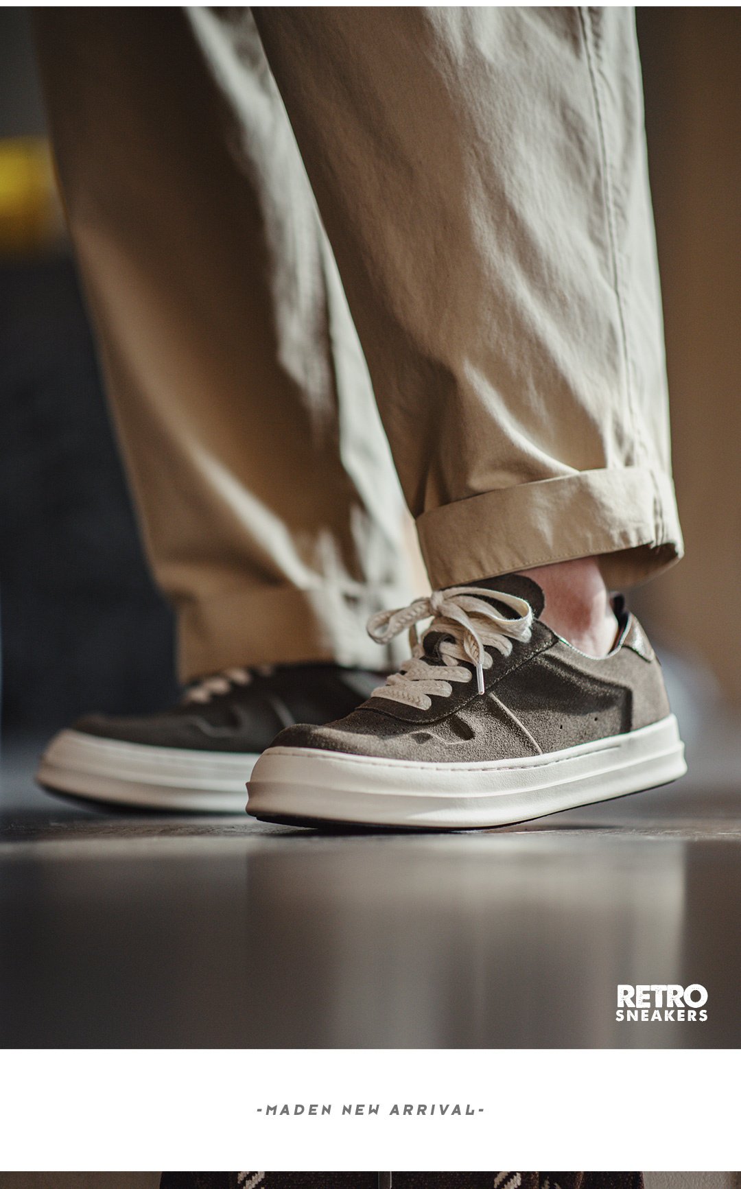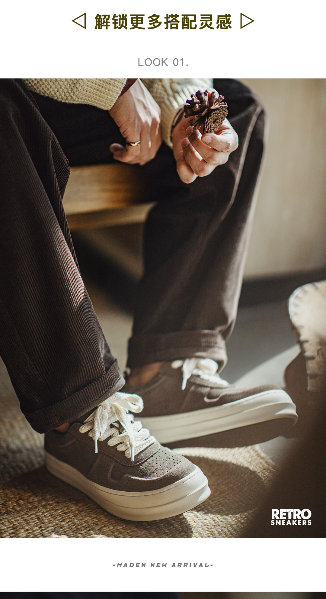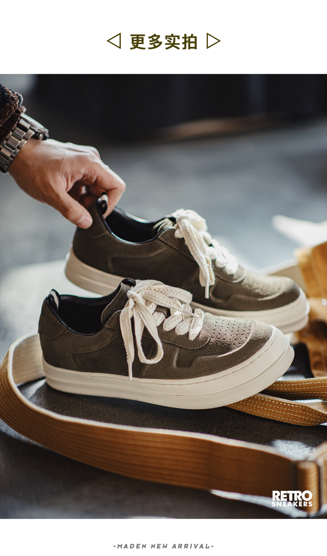马登复古皮鞋秋冬新款厚底翘头男潮鞋低帮百搭休闲增高真皮板鞋