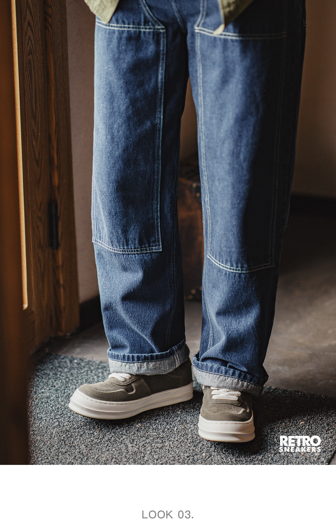 工装优选 美式复古灯芯绒补丁休闲裤vintage宽松阔腿直筒裤男秋季