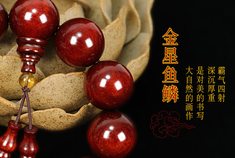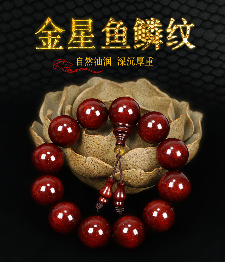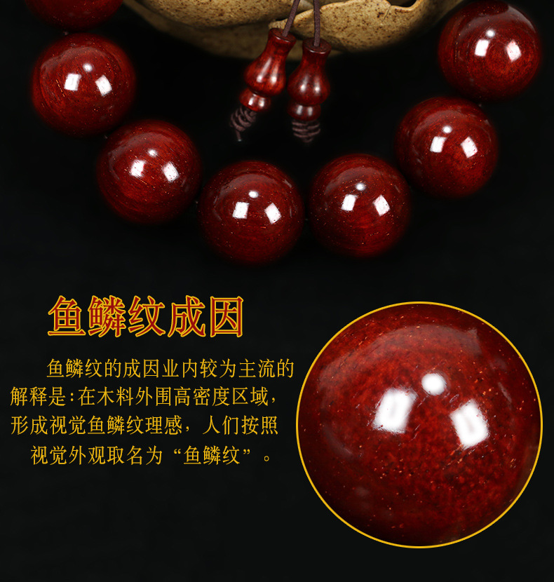 六鑫珠宝 印度小叶紫檀金星鱼鳞纹男士20mm文玩手串 自然油润 深沉厚重