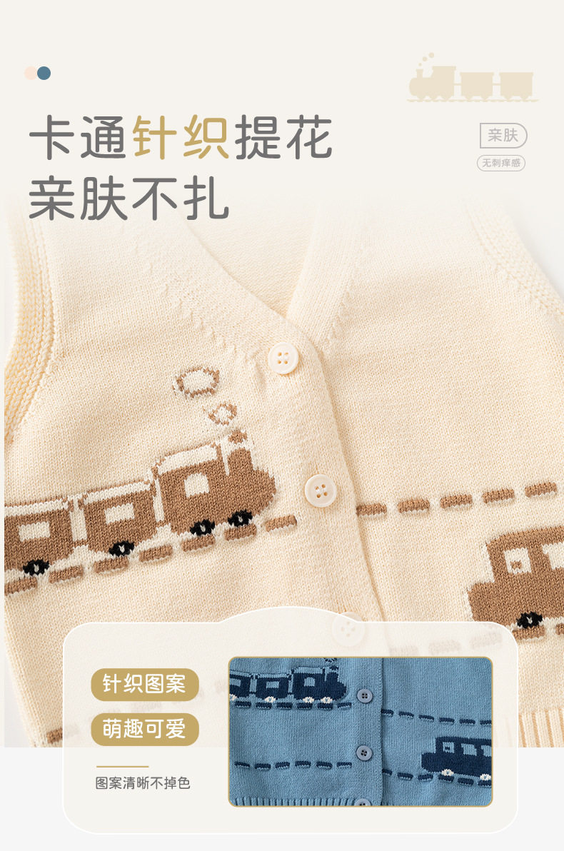 梦境列车纯棉婴儿马甲开衫秋季新款针织儿童马甲简约可爱宝宝马甲 商品图3