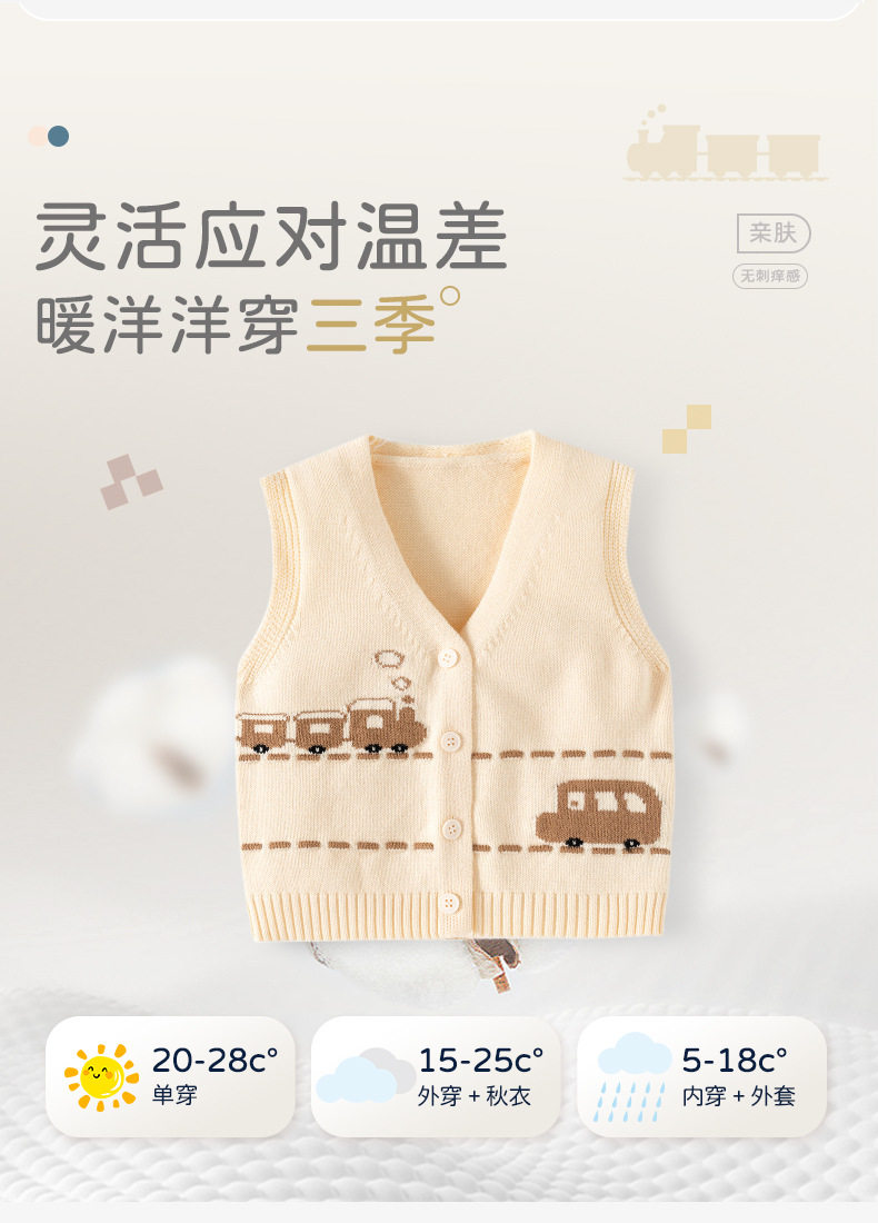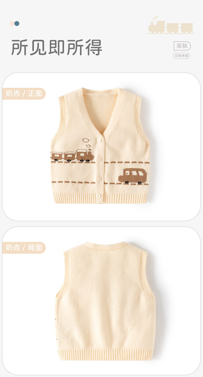 梦境列车纯棉婴儿马甲开衫秋季新款针织儿童马甲简约可爱宝宝马甲 商品图0