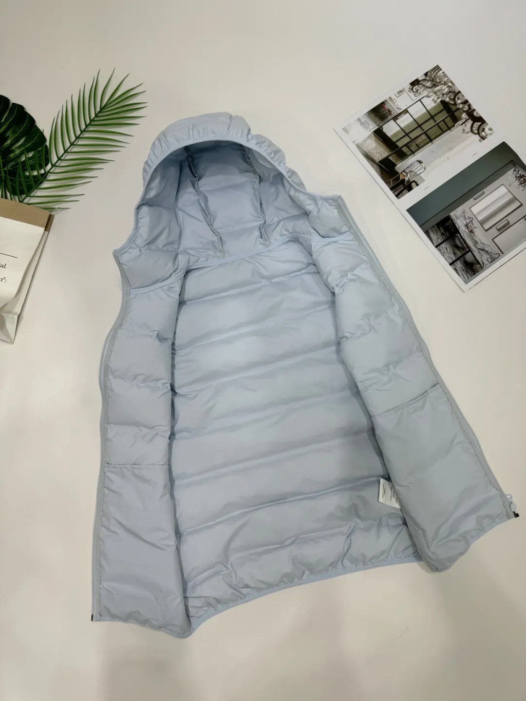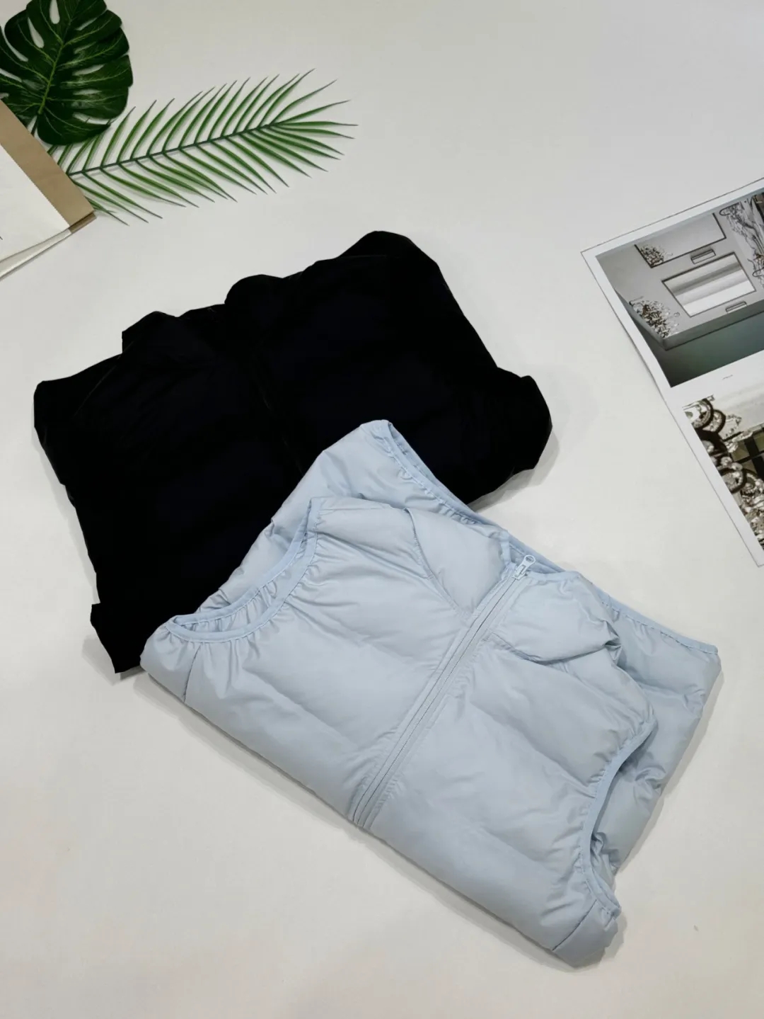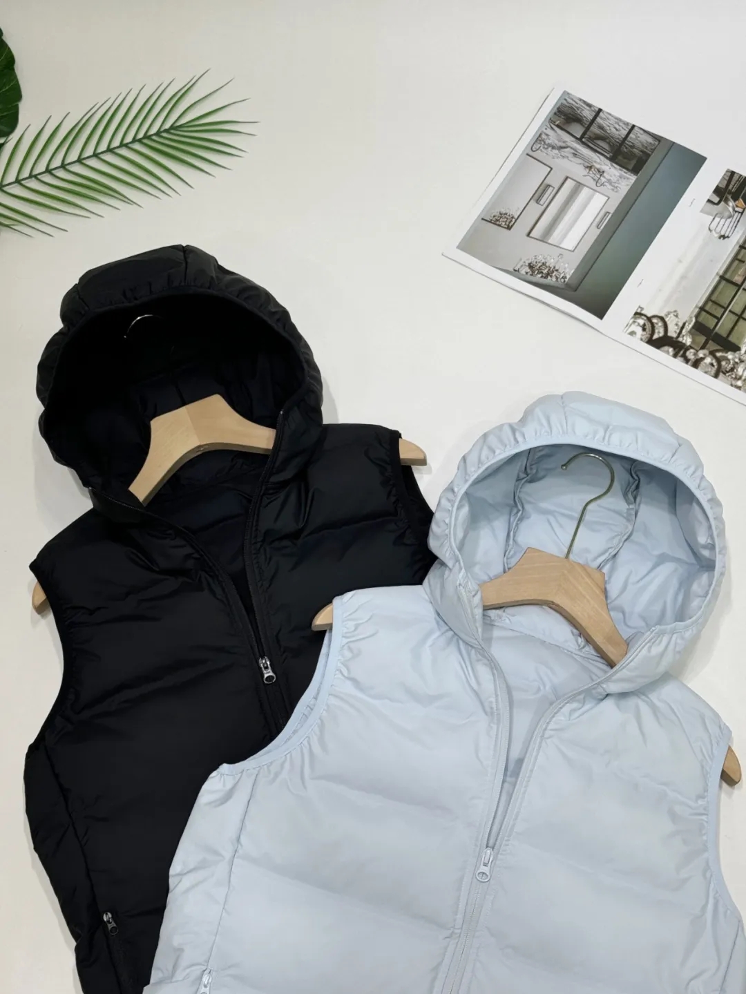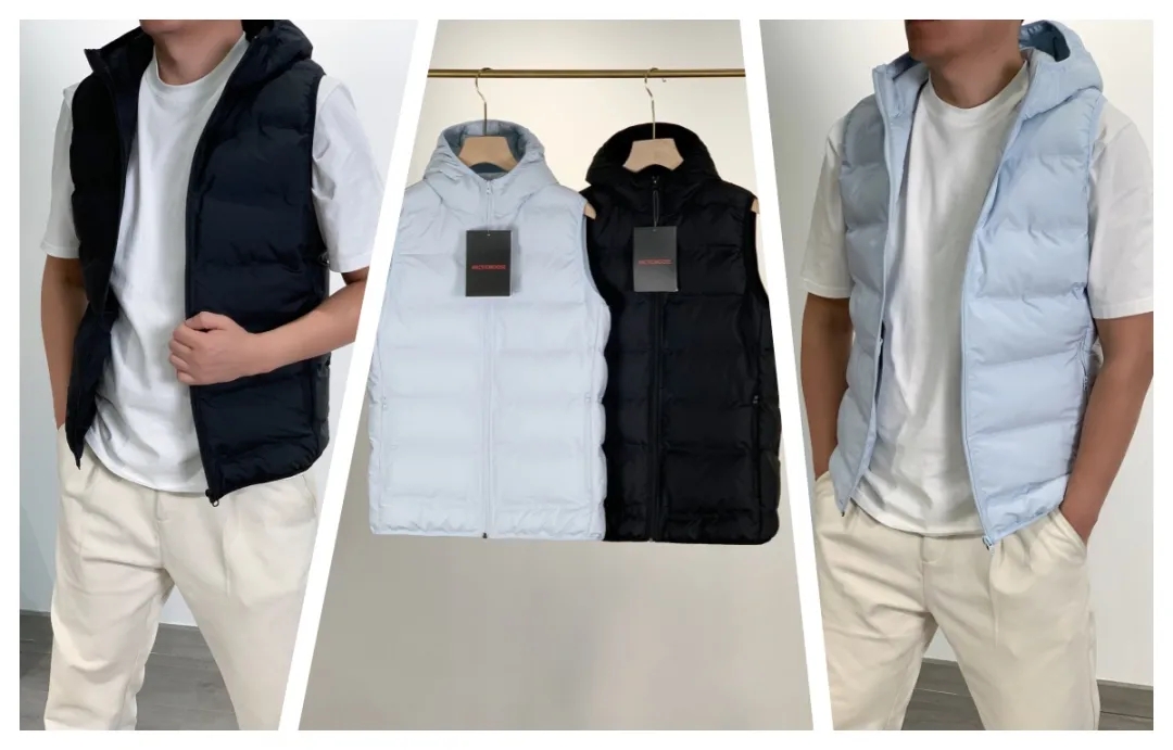 轻暖无负担,一黑一蓝搭出秋冬百变型格 当秋冬穿搭开始追求“保暖与轻便的平衡”,这款全锦纶棉马甲带着“轻暖双绝”的姿态来了——100%锦纶面料轻薄挺括,填充棉锁温不厚重,更有黑、蓝双色可选,轻松适配你所有风格的叠穿与单搭。 它是叠穿的“氛围担当”:黑色款酷感利落,内搭白T外搭大衣,瞬间拉出层次感;浅蓝色款清新雅致,配毛衣或衬衫,把秋冬穿得像春日般轻盈。连帽设计,实用与质感双双在线,无论是日常通勤还是周末出街,都能让你在“保暖圈”里靠“轻感”脱颖而出。 选它,让秋冬穿搭告别臃肿,以“轻暖”姿态解锁N种风格可能。