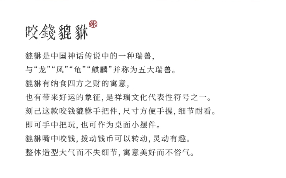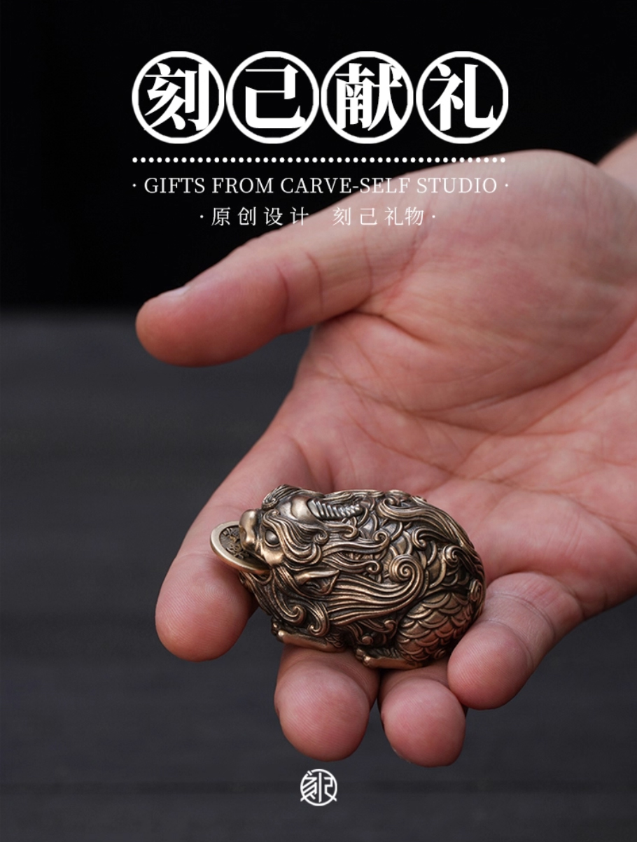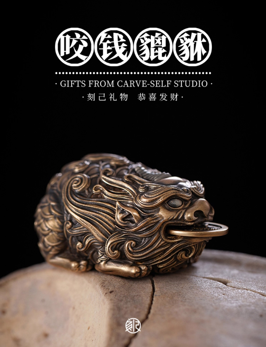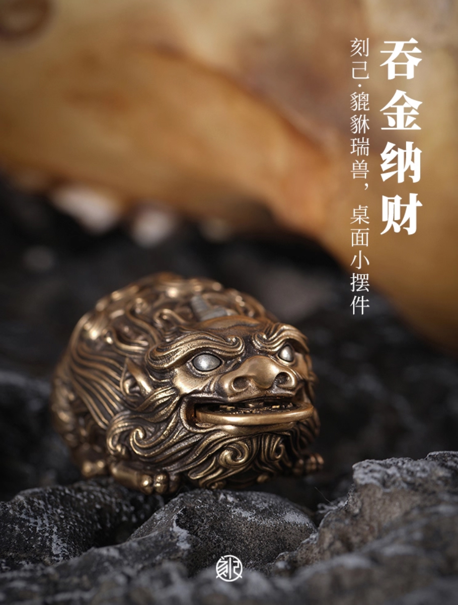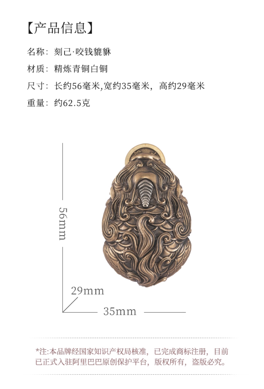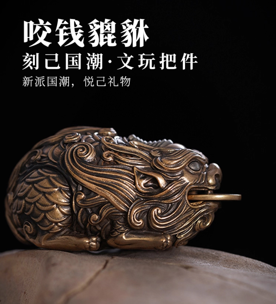 刻己 - 咬钱貔貅 手把件盘玩 创意铜雕像摆件 国潮风礼物【官方授权 】【48小时发货】