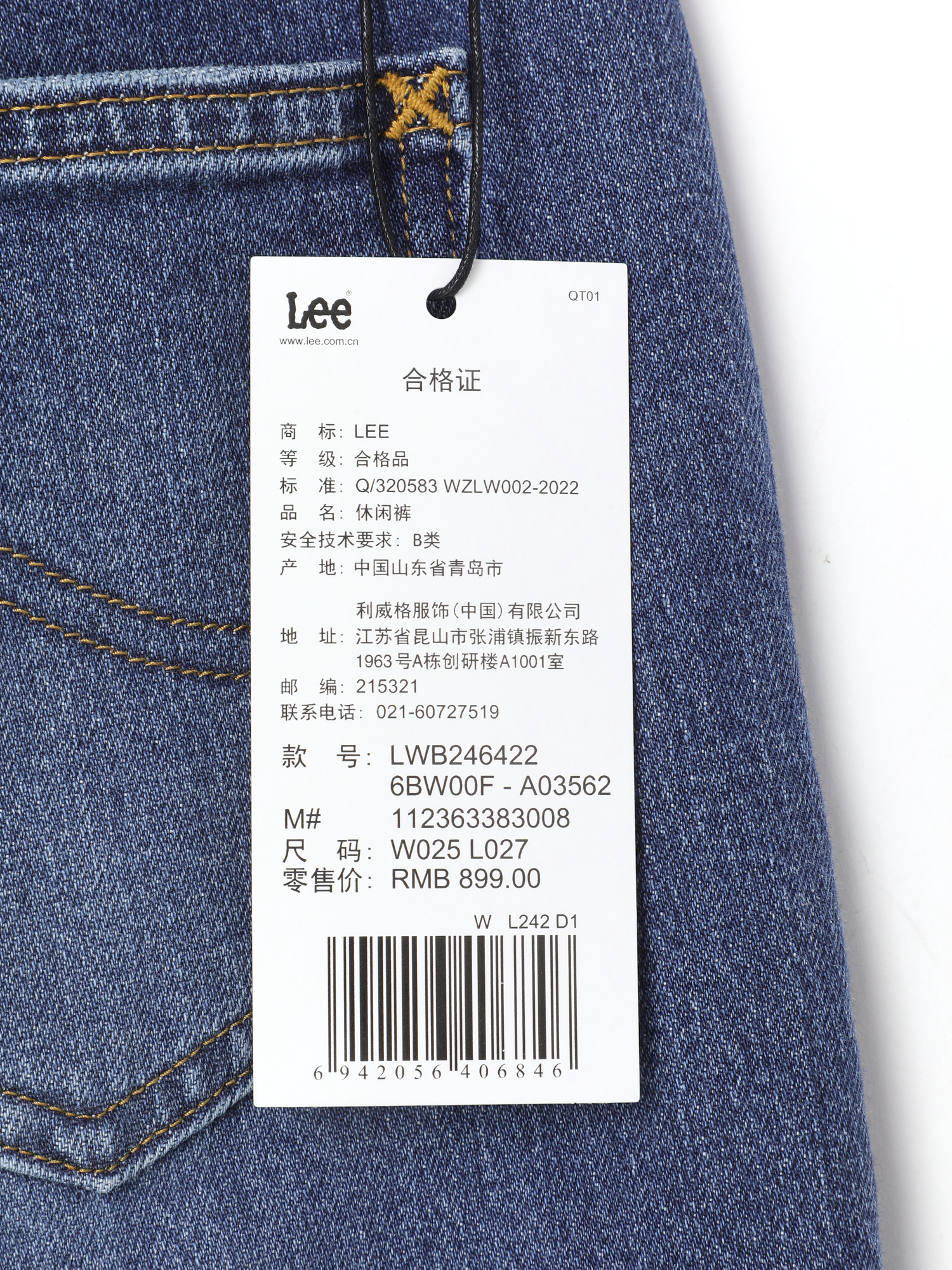 【云粉节】【新品】6楼LEE女式牛仔长裤 吊牌价899