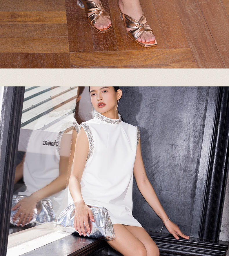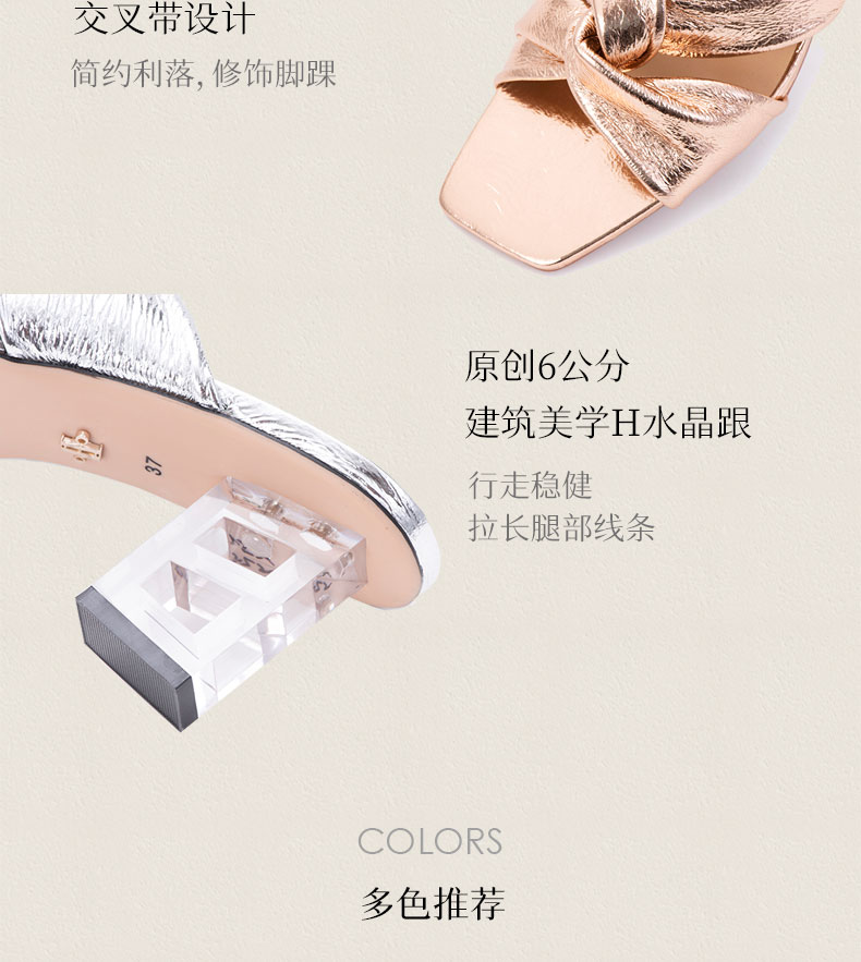 heelz设计师手工鞋履 |H水晶跟金属羊皮纽结凉鞋6公分