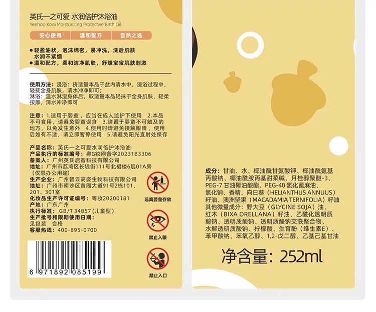 【春上新】8楼英氏YeeHoO 英氏儿童沐浴油婴幼儿沐浴露宝宝专用二合一温和抚触滋润净肤沐浴吊牌价109 活动价98