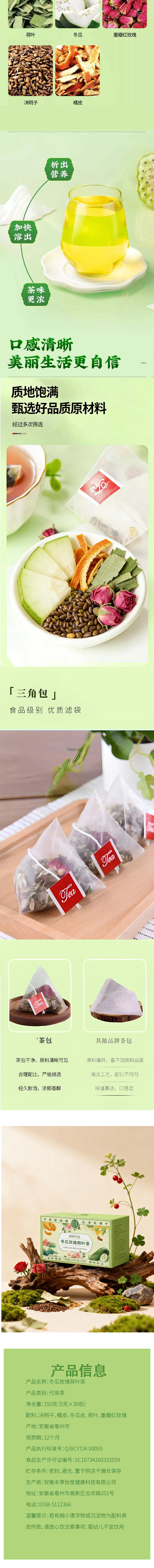 [精选]【肖老师推荐】冬瓜玫瑰荷叶茶 无添加 祛湿消肿消食 冬瓜荷叶决明子重瓣玫瑰橙皮独立茶包 150克/盒(5克×30包)