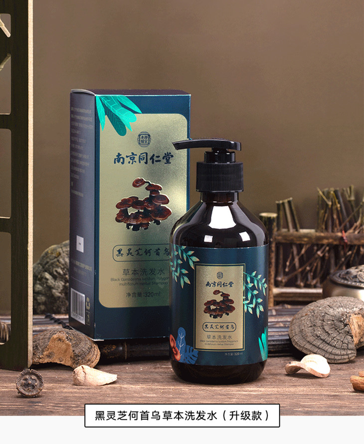 而升级改良版的何首乌洗发水,在这基础上又添加黑灵芝、苦参、生姜精华。