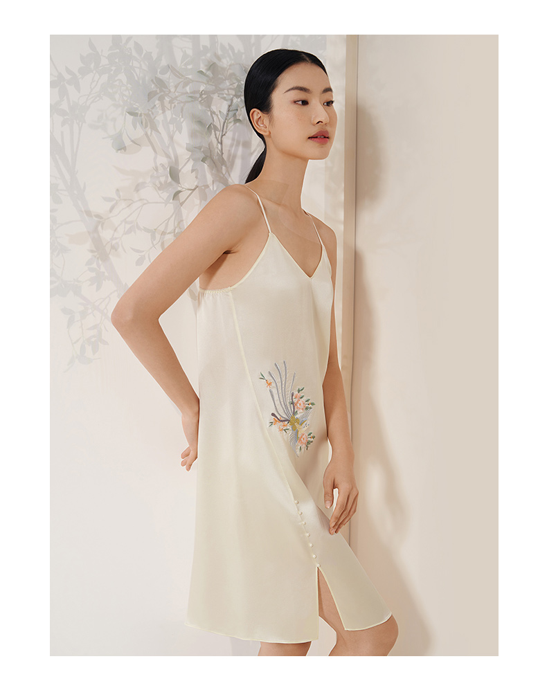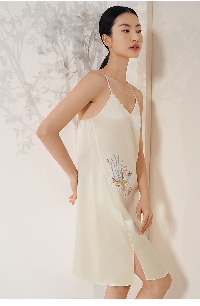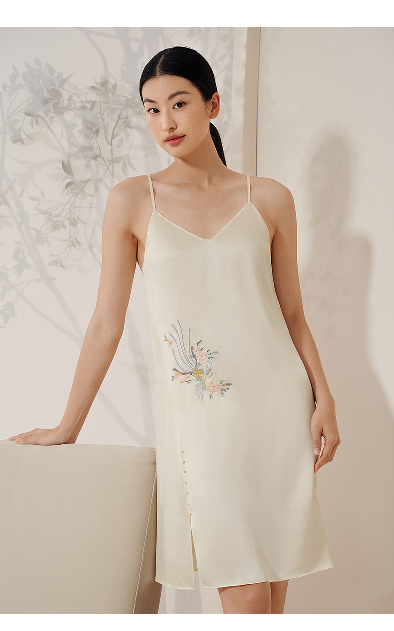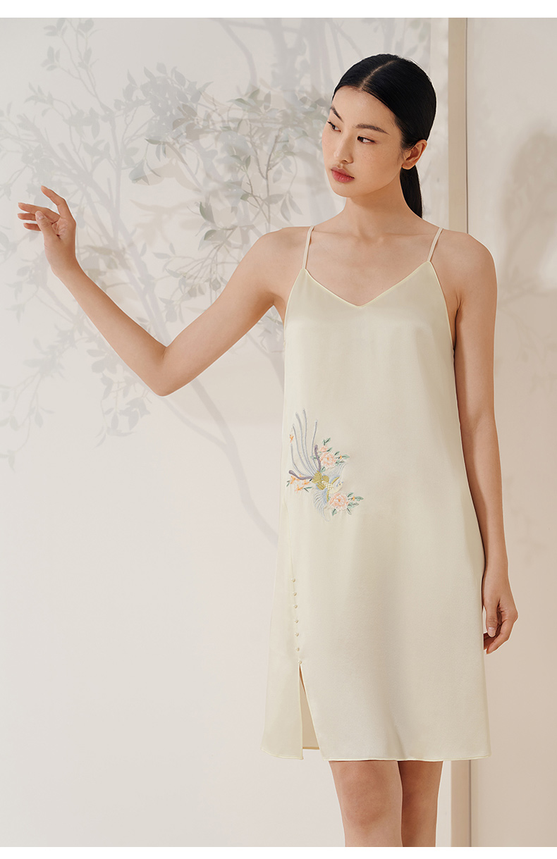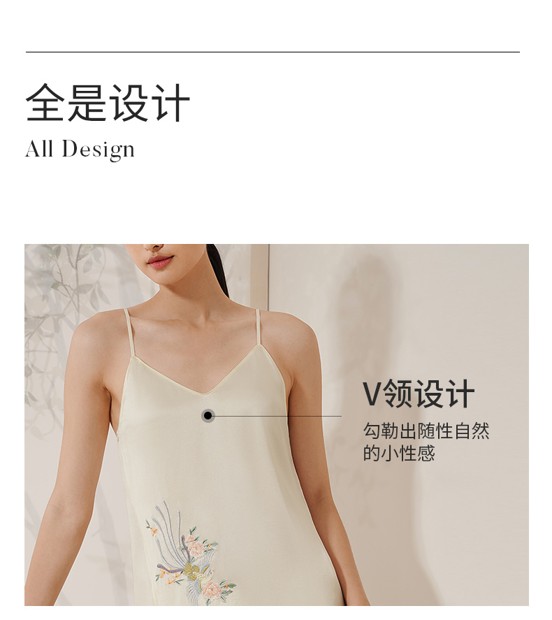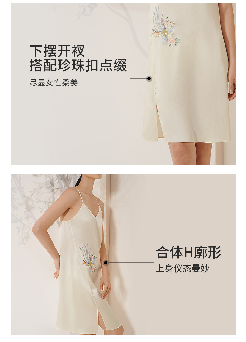 【凤穿牡丹】金三塔重磅真丝睡裙女100%桑蚕丝新中式刺绣宽松吊带裙 YSFEB304