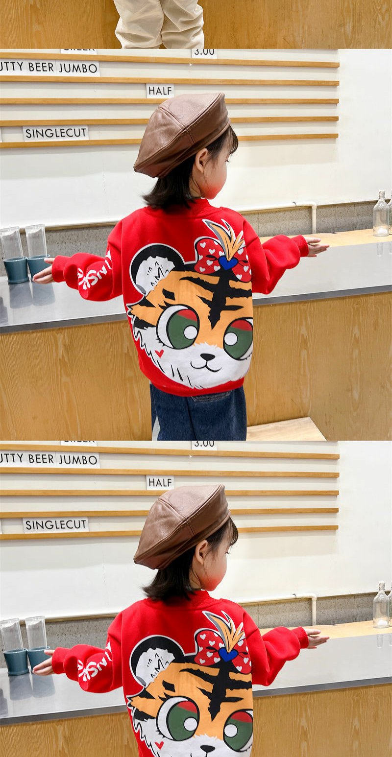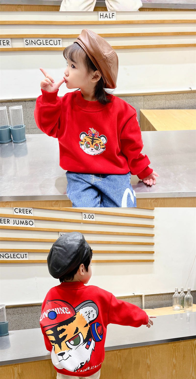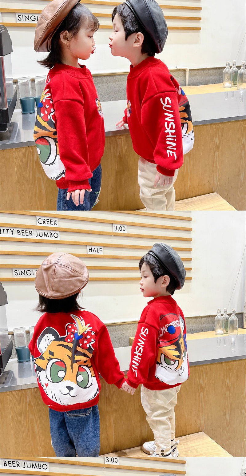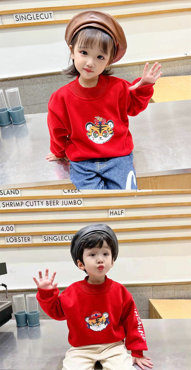 男女童卫衣加绒新虎年红色儿童洋气宝宝2022新款韩版拜年服上衣潮