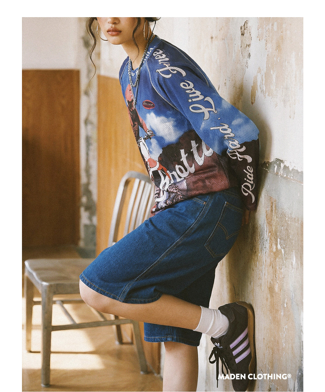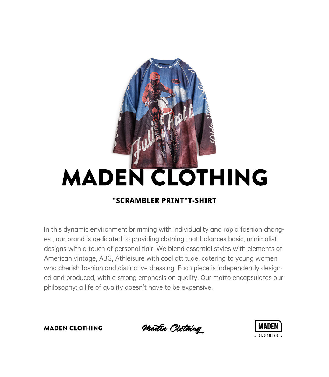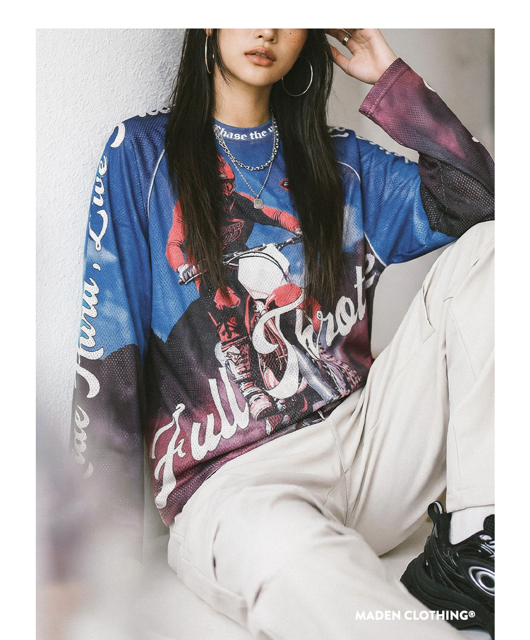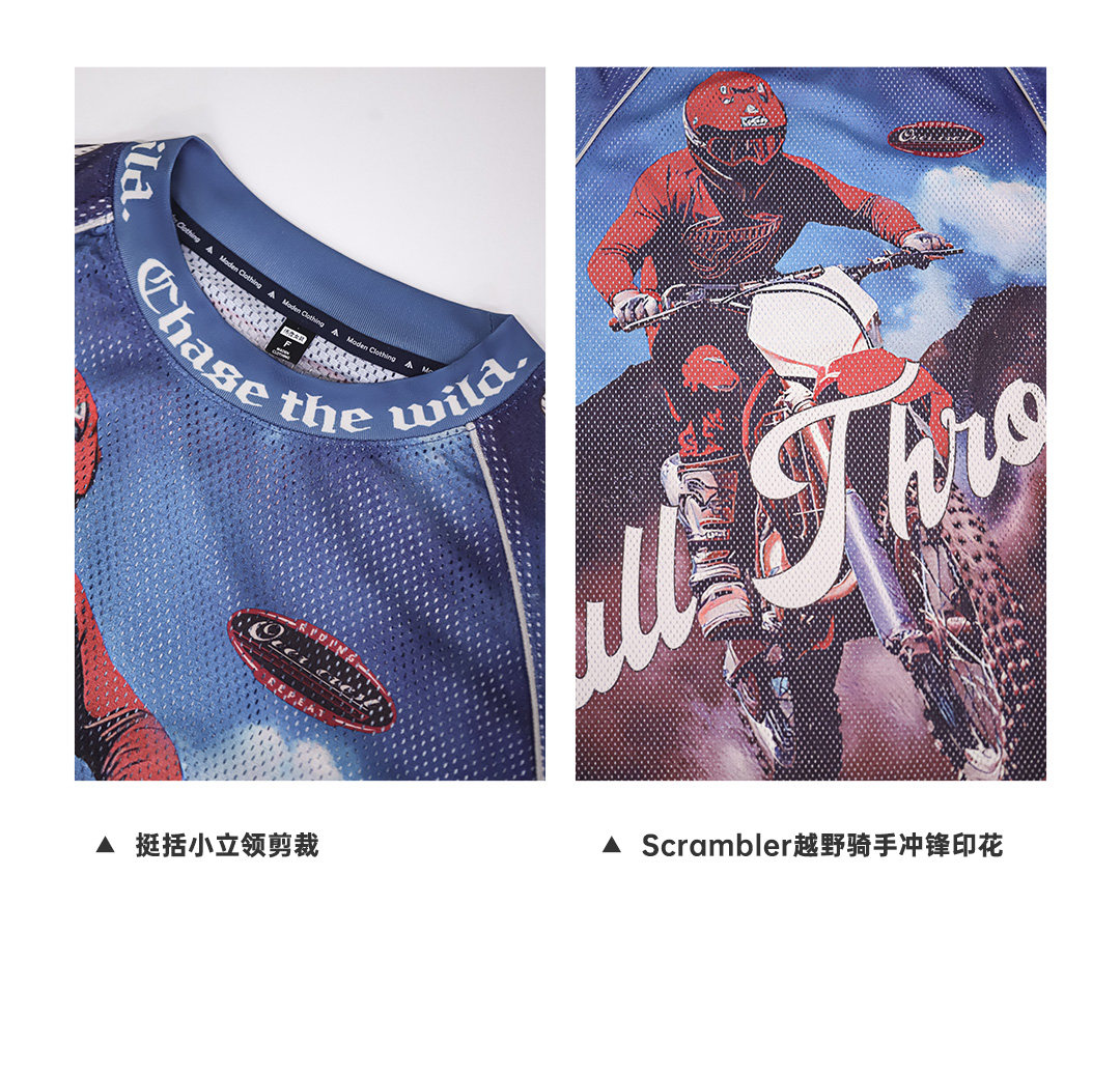 马登美式复古针织满印花长袖T恤薄款宽松立领套头外穿上衣女士春