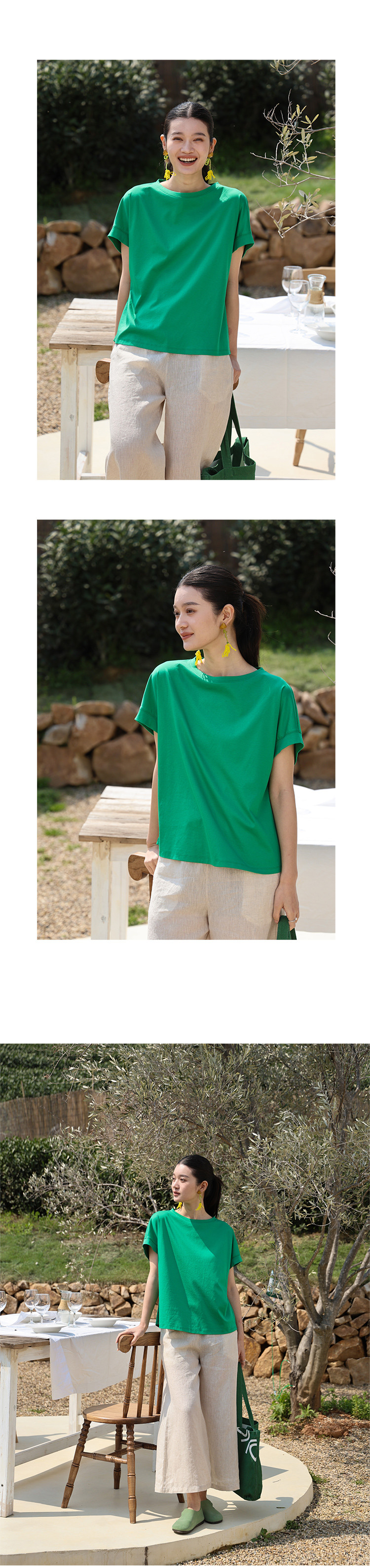 绽放旅行女装224朵/滑滑T恤桑蚕丝光双面针织透气舒适蝙蝠袖短袖