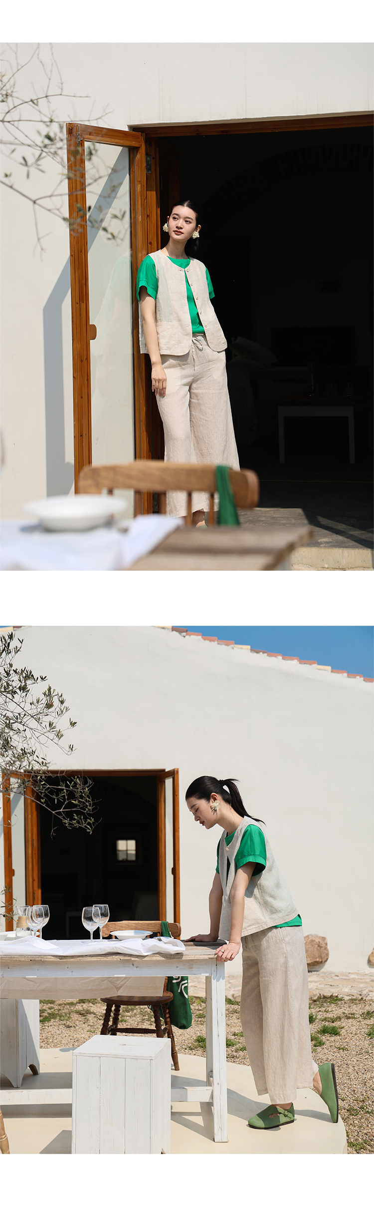 以天然亚麻为载体,融合热烈色彩与自在剪裁为身在城市、心怀远方的女性提供兼具美学与舒适的旅行着装