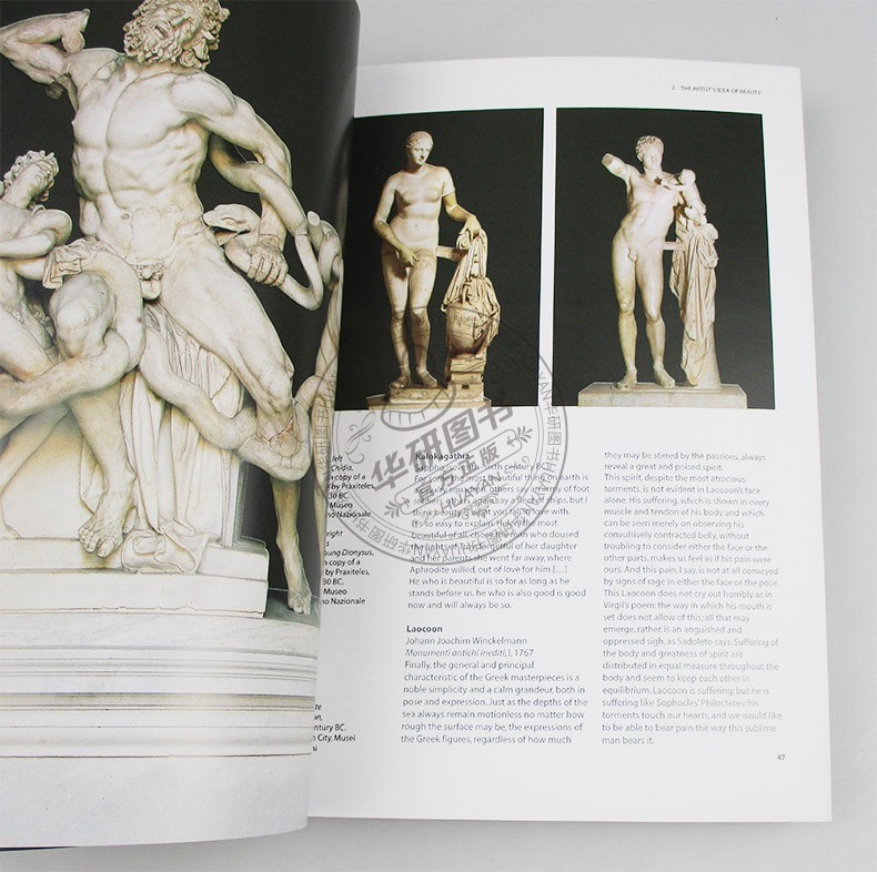 全书以主叙述带出源源不绝的绘画、雕刻作品,并长篇征引各时代的作家与哲学家,书前附上多页依时代顺序安排的图片对照表,使自古以来的对于“美”的观点之演变史一目了然。