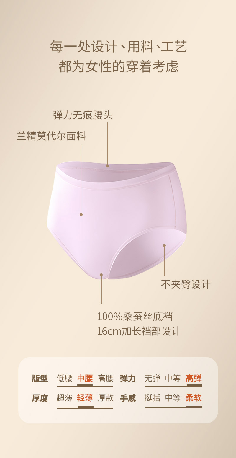 【春节预售:13—23号停发】女设计师做的健康内裤,狂野橘子桑蚕丝内裤 | 【16cm加长桑蚕丝底裆】 / 【常规裆高腰款】可选,7A级抗菌,兰精莫代尔裤身,85-145斤可穿(6条装)
