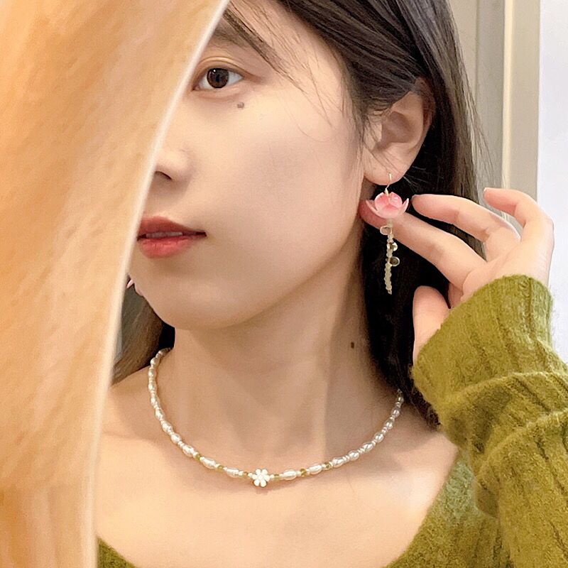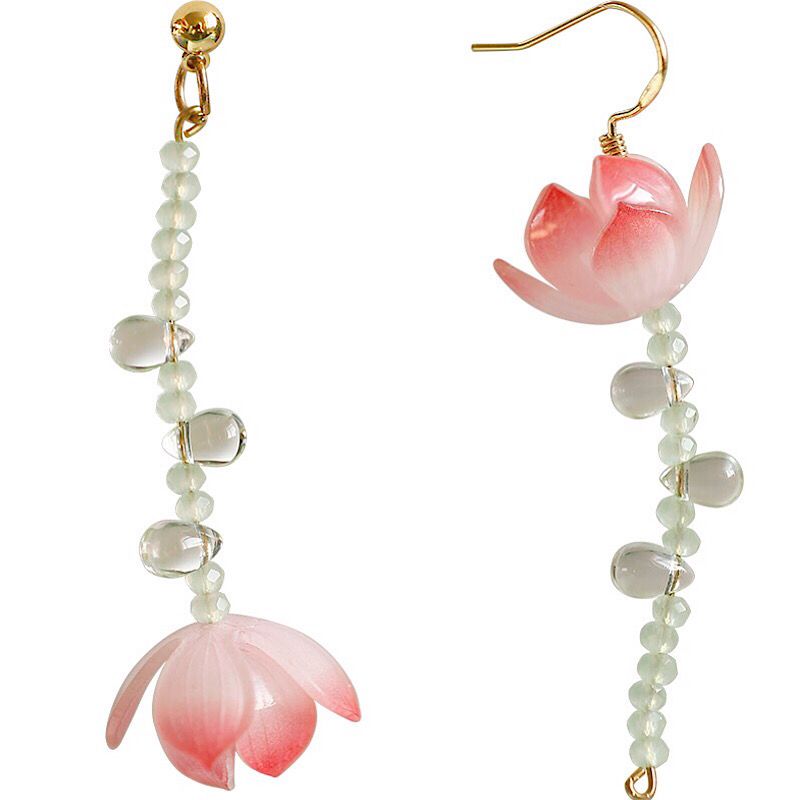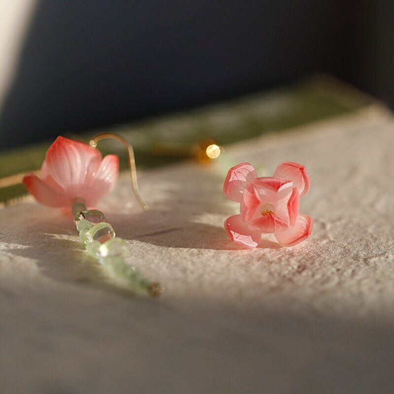 疏雨小荷丨软语文艺古典不对称荷花S925纯银耳针耳坠古风礼物女