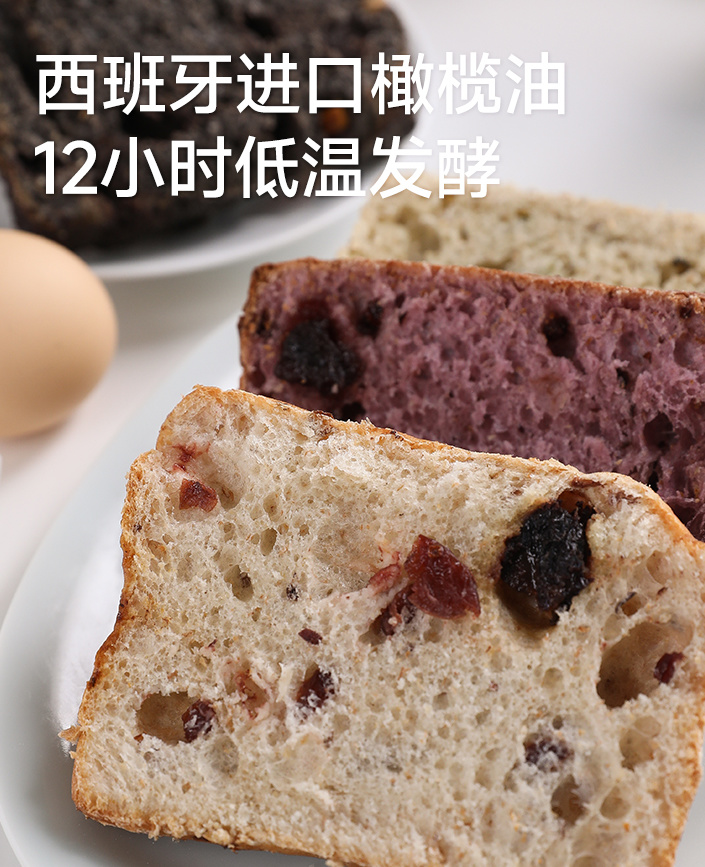 恰巴塔还有五种风味,每一个都各有乾坤。无蔗糖原味纯粹干净,只有麦香与发酵香的碰撞,口感清爽不腻;黑醋栗蓝莓风味藏着饱满果粒,酸甜适口;陈皮丁巧克力则是咸甜交织的绝妙体验,陈皮的清香中和了巧克力的微苦,偶尔还能咬到陈皮丁的脆感;橄榄菜南瓜籽仁味咸香十足,脆嫩颗粒感搭配橄榄菜的鲜香,每一口都藏着惊喜,越吃越上头;蔓越莓黑加仑,酸甜回甘的果味,温润有层次,也是经典美味哦!