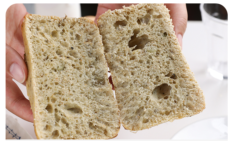 下厨房的恰巴塔,用了≥20%全麦粉,麦香醇厚又扎实;搭配西班牙进口特级初榨橄榄油,满满清新馥郁的油脂香。更难得的是,它采用波兰种低温发酵工艺,足足慢养12小时,让面团充分醒发,风味也在时光里层层沉淀,最终造就了外脆里软的气孔组织!