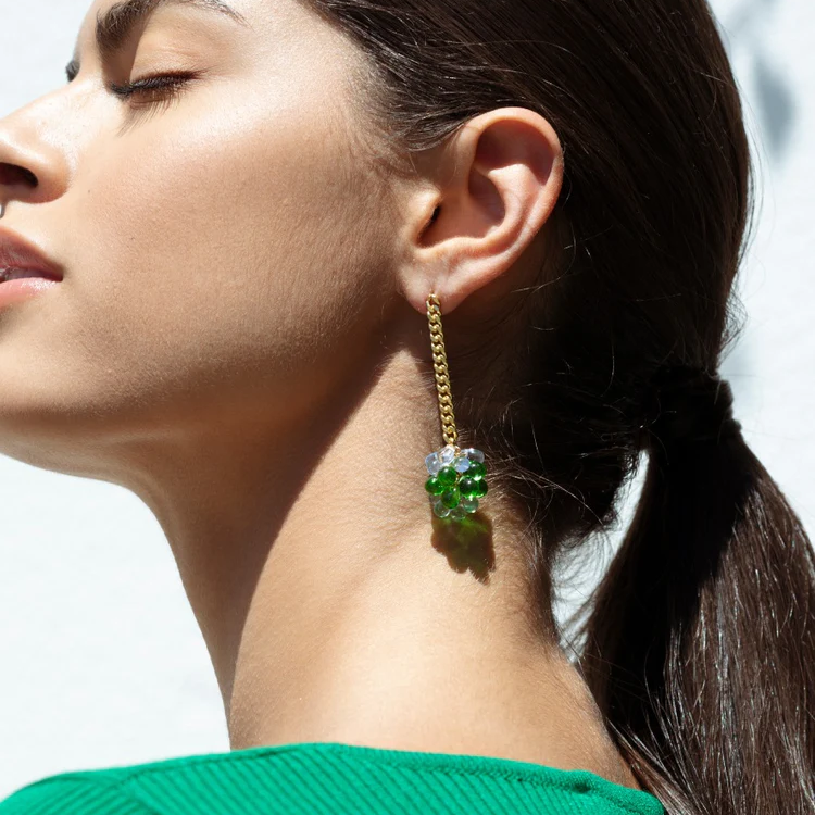 订购6周到|Annele-Bon Bon-长款 绿色 耳环[芬兰设计师]