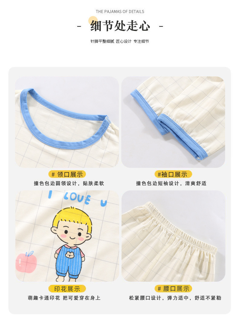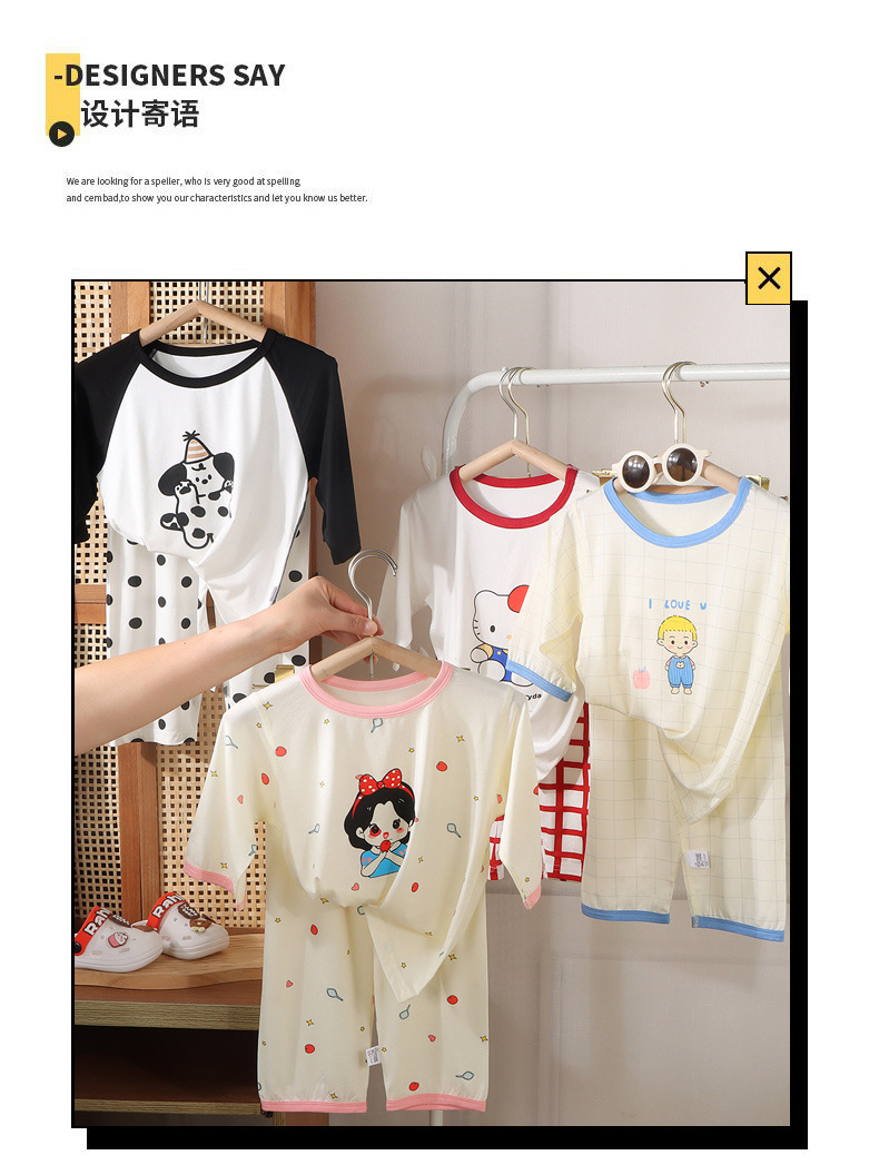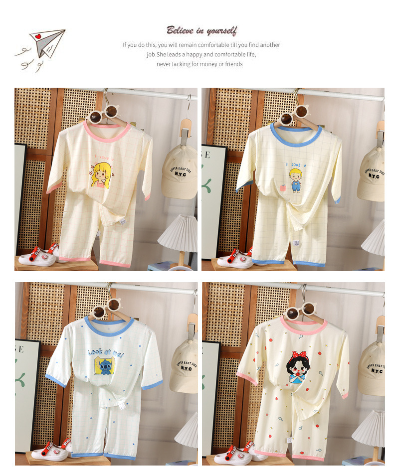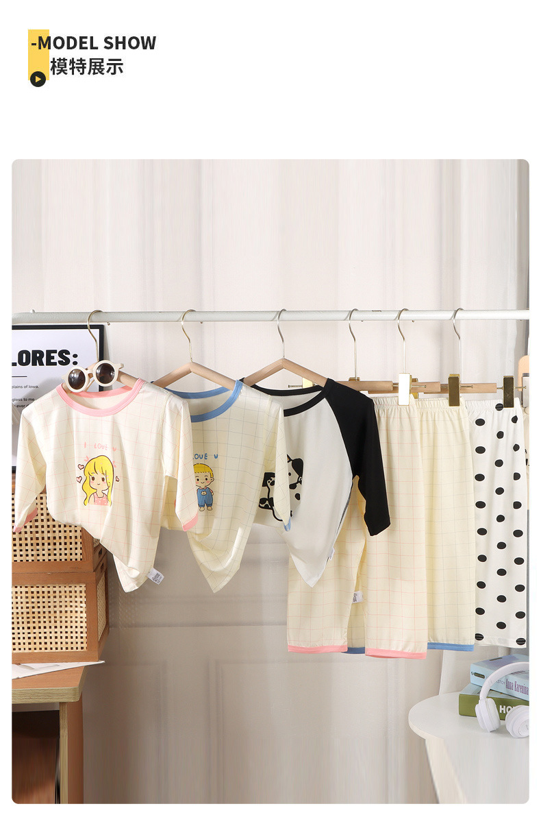 【会呼吸的家居服29.9/套起】儿童睡衣春夏季七分薄款莫代尔女童卡通家居服套装宝宝中大童无骨空调服聚