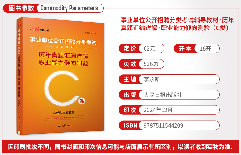 《中公版2025事业单位公开招聘分类考试辅导教材:历年真题汇编详解职业能力倾向测验(C类)》内含10套最新真题(2020_2024),还原考场,提升实战经验。设置;答案总览,便于核对答案。解析明确答题切入点,思路详尽透彻,便于理解答案。