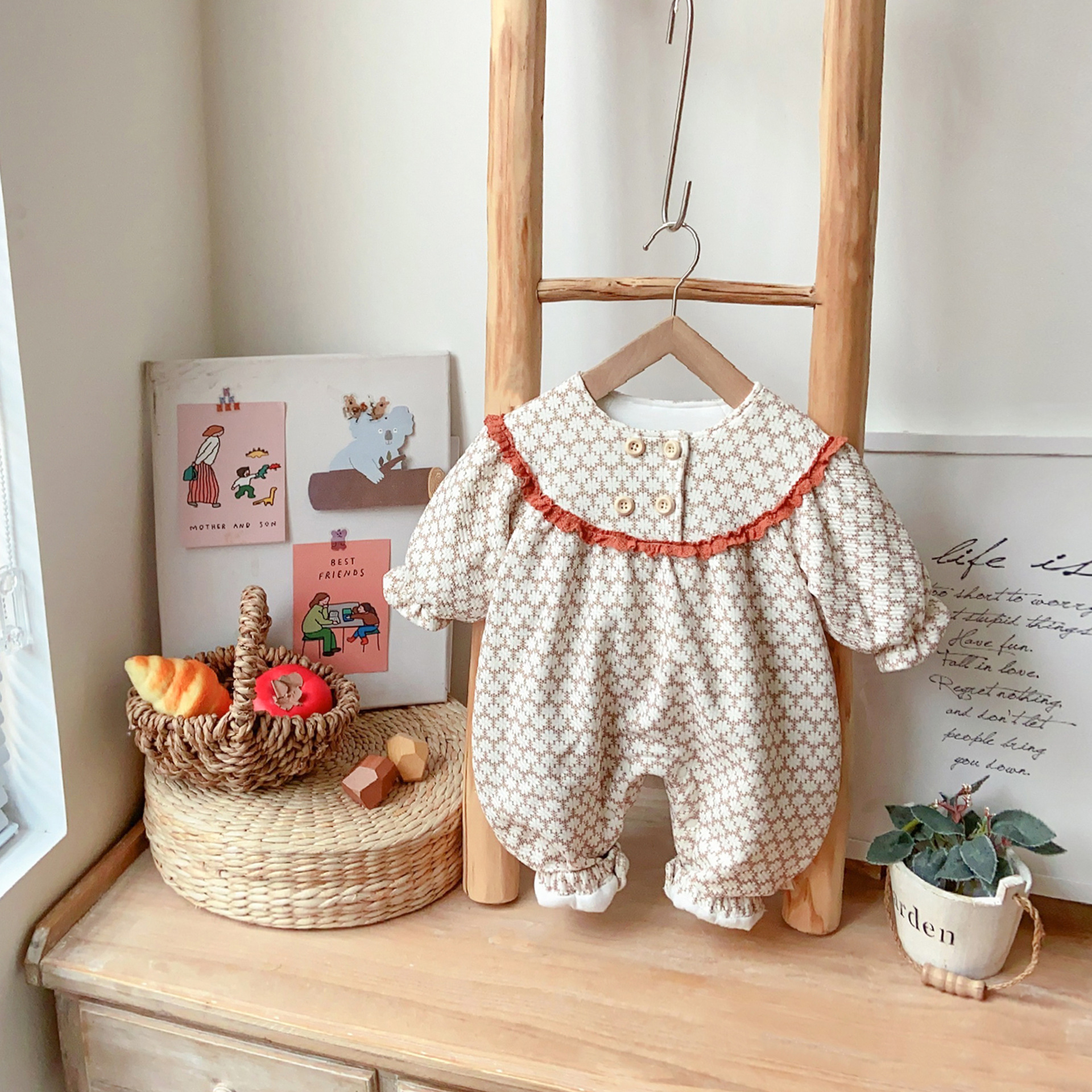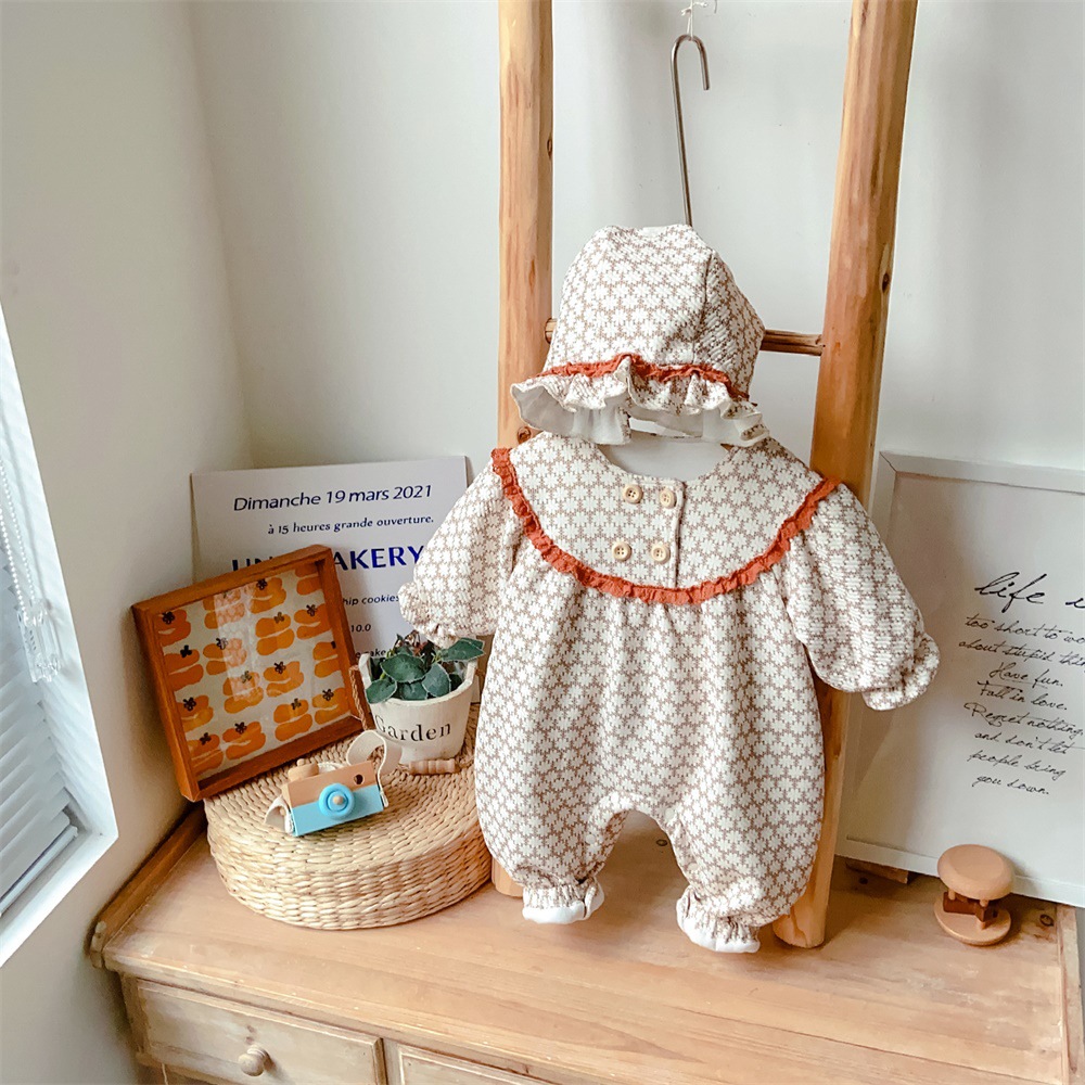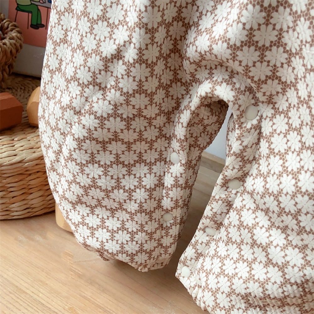 【送帽子!】2024年宝宝新款韩版衣服秋冬装连体衣婴儿碎花夹棉保暖外出服爬服