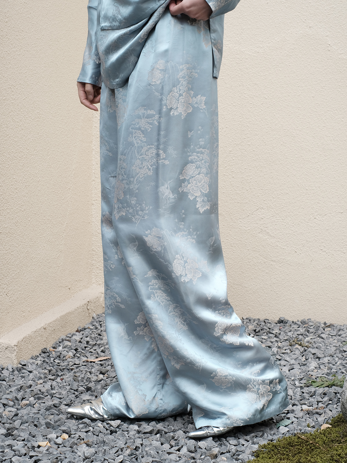 盛唐婧 |桑蚕丝重缎折枝玫瑰花直筒裤-黑色