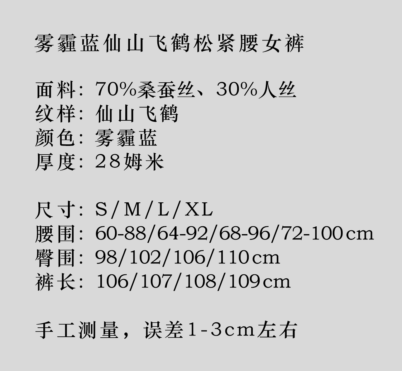 盛唐牡丹 |雾霾蓝仙山飞鹤松紧腰女裤