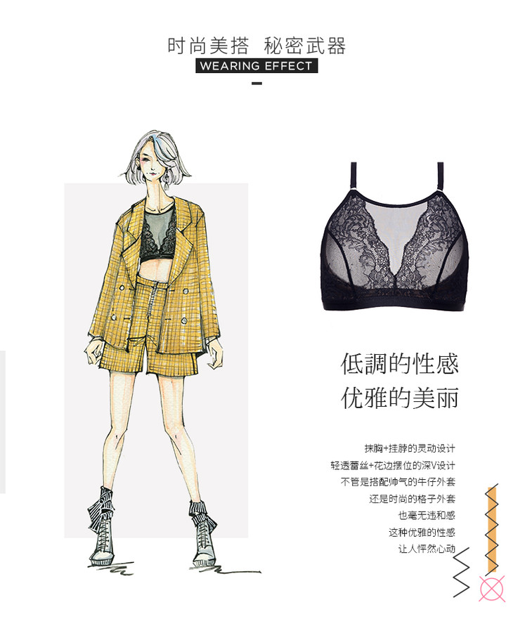 怦然心动挂脖抹胸无钢圈三角杯 大胸可穿bralette