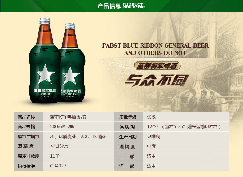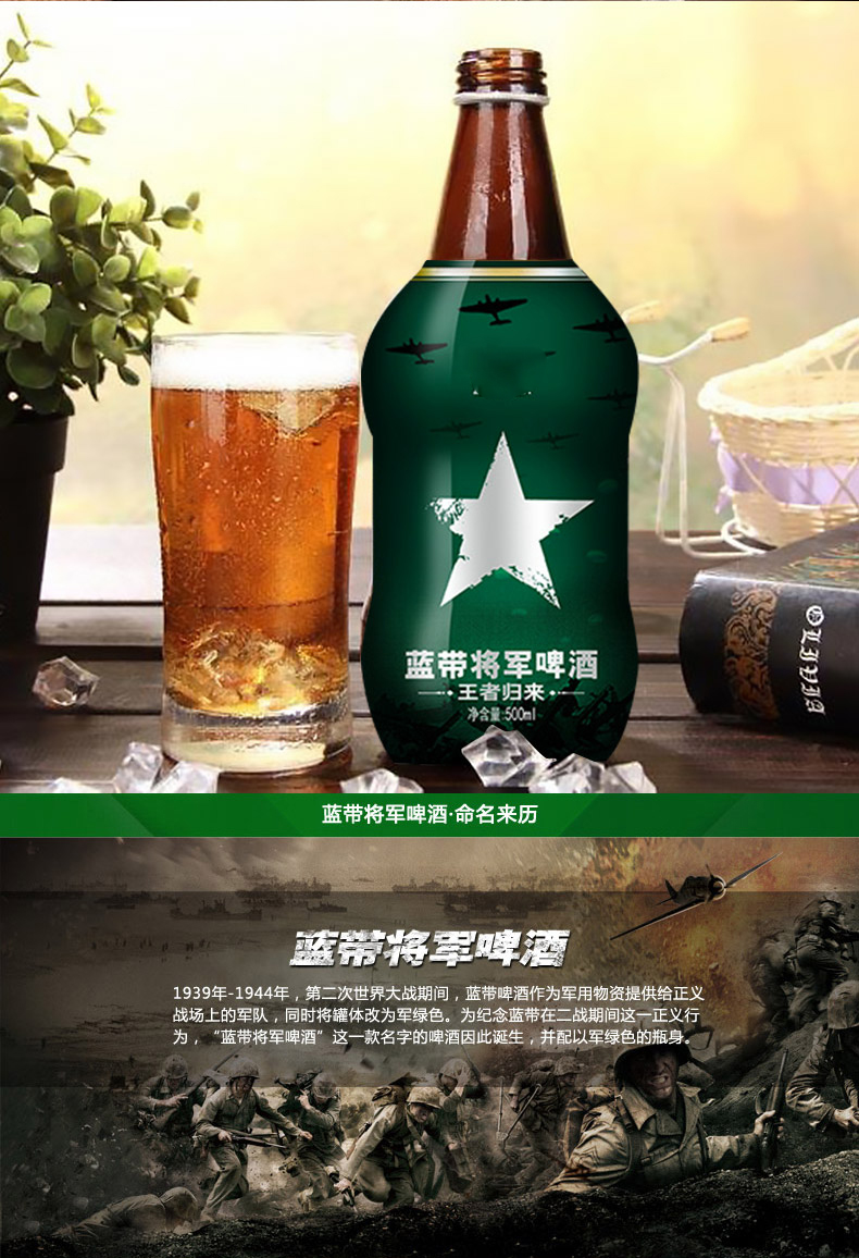 蓝带将军玻璃瓶啤酒4.3%vol 500ml