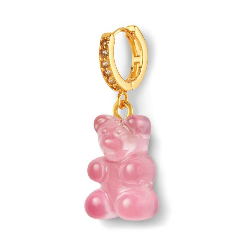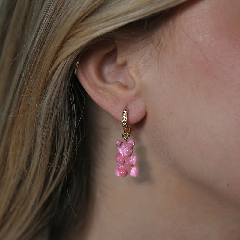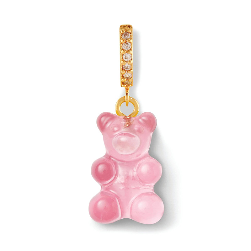 订购6周到|CRYSTAL HAZE-Nostalgia Bear Hoop-pave-粉色小熊 单只 耳环 (金色环扣)[挪威设计师]