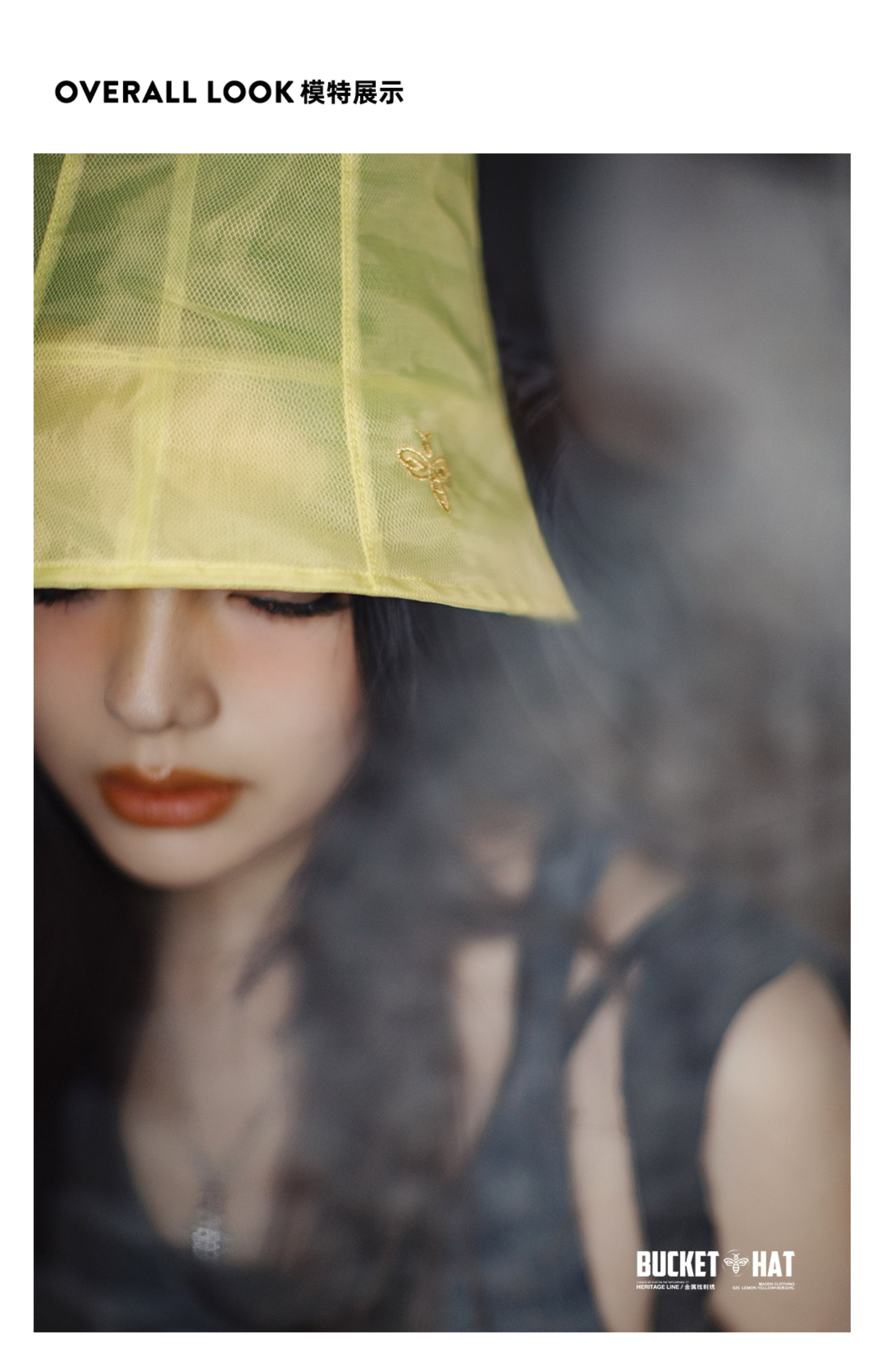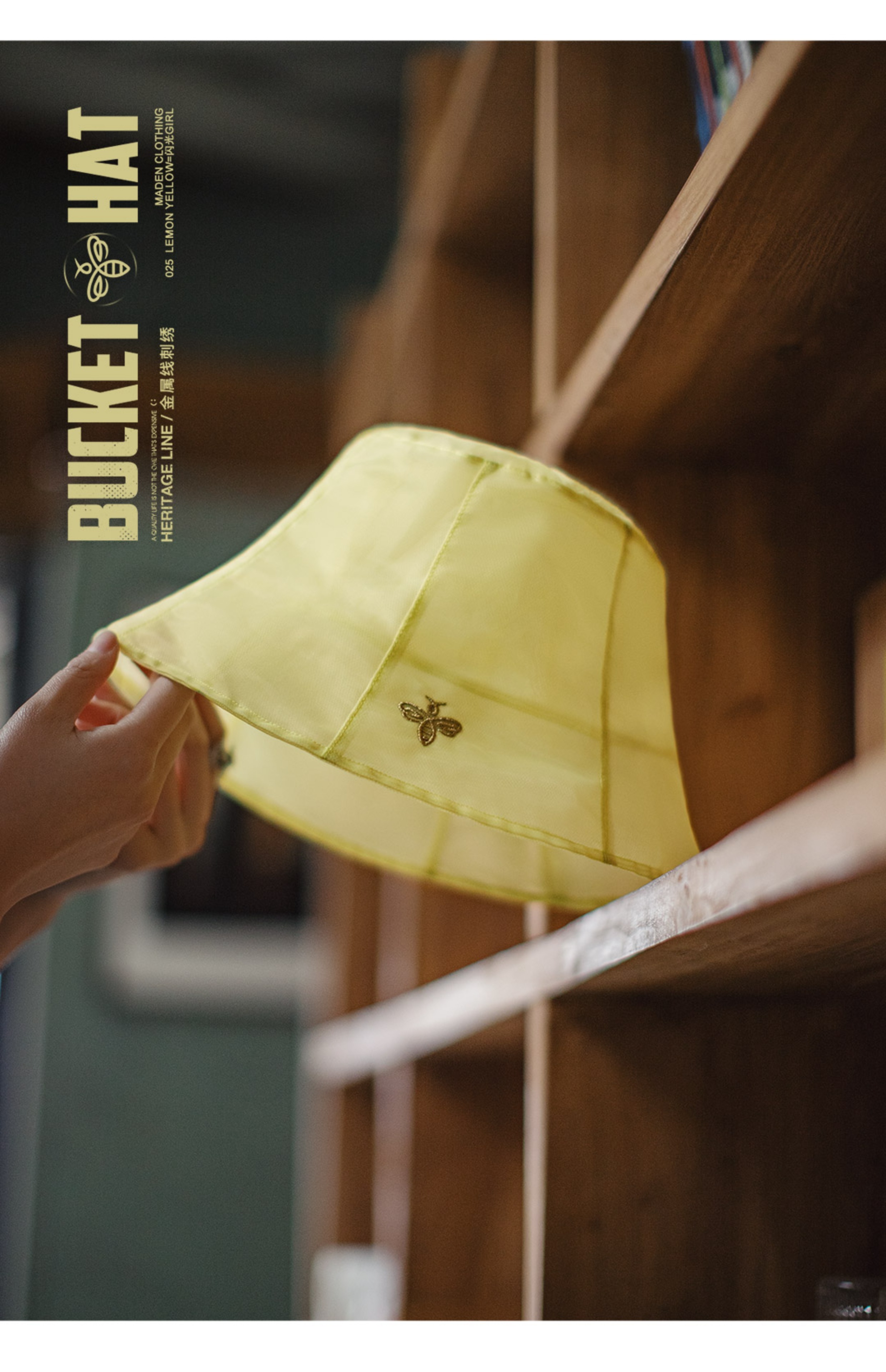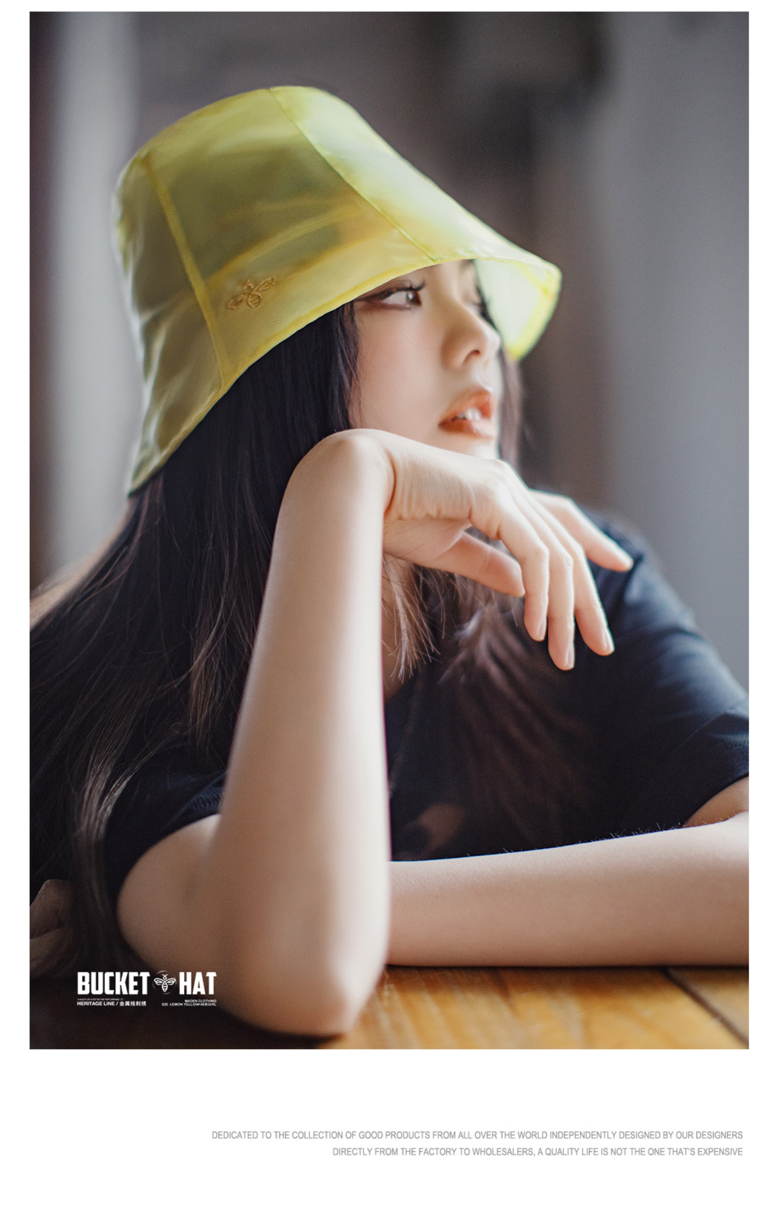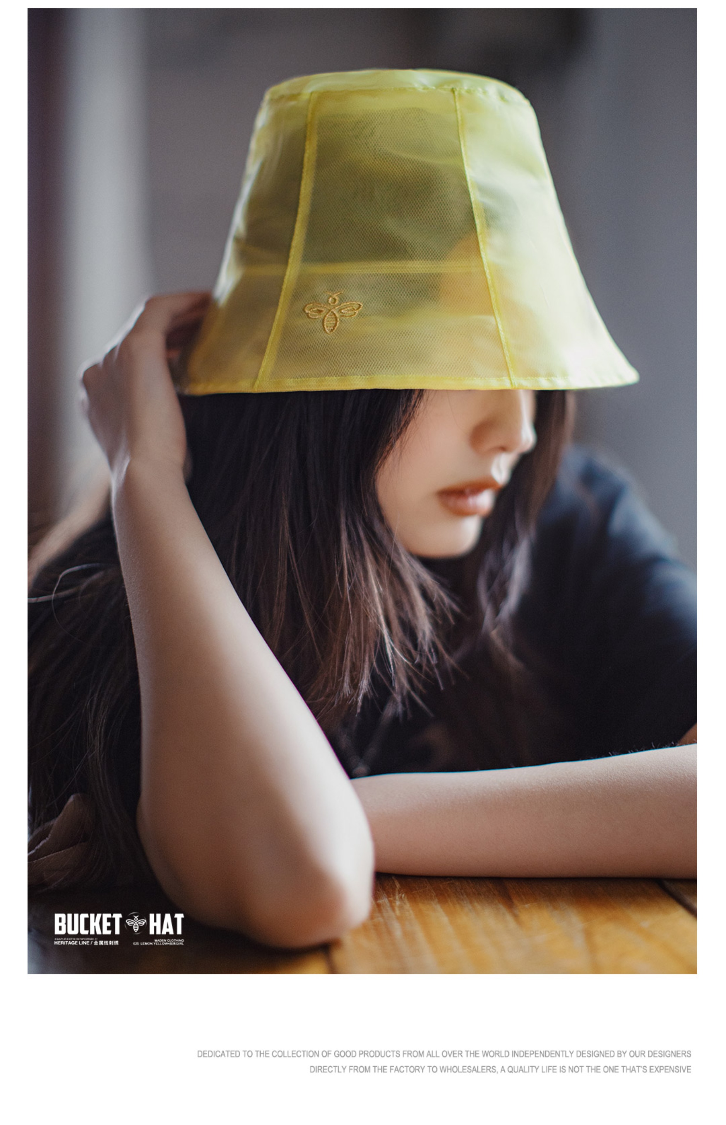 马登夏日鹅蛋黄遮阳可折叠渔夫帽2025密网纱风孔透气便携凉帽女