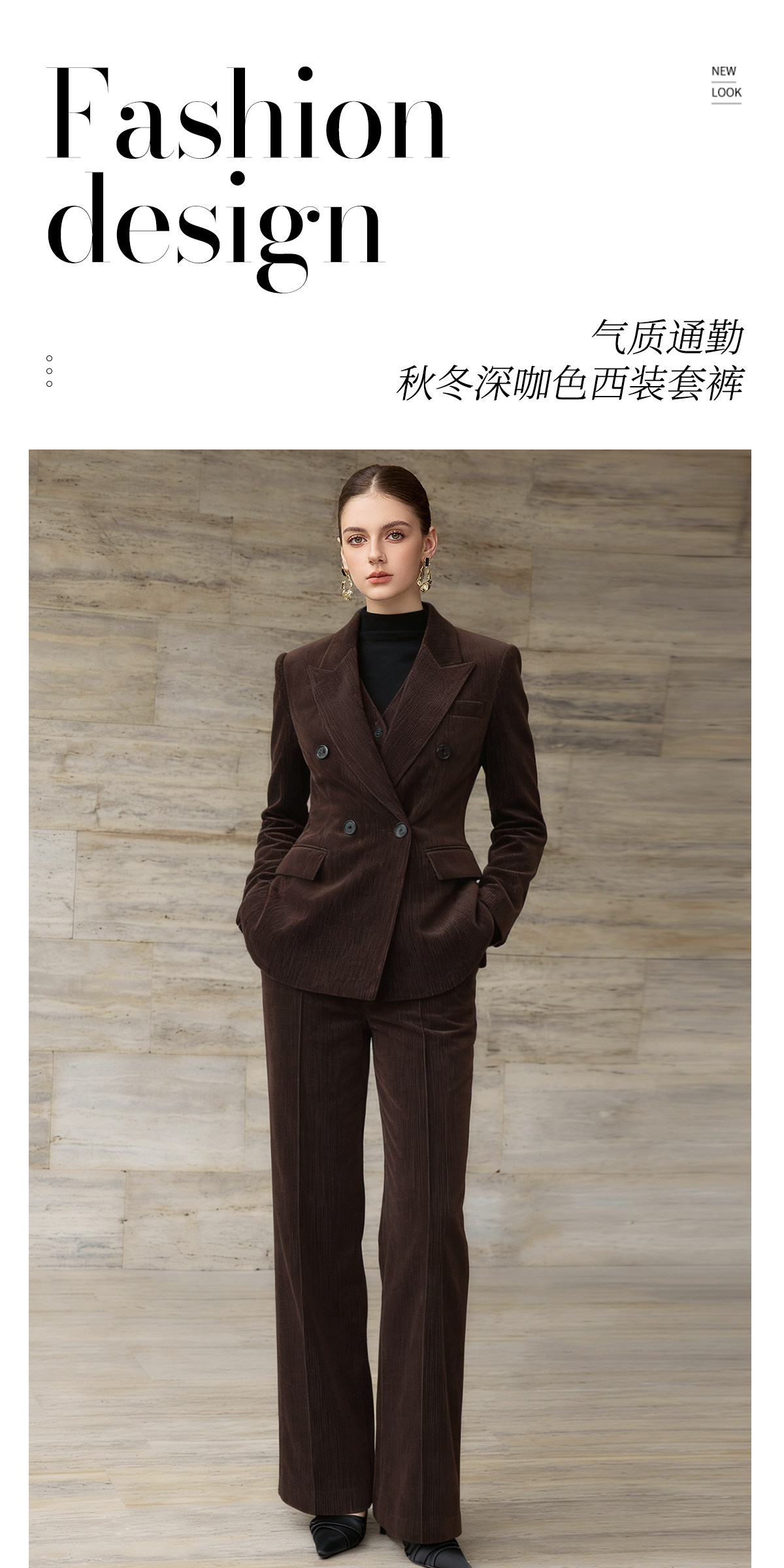 艾尚臣长袖商务西装套装女冬季双排扣收腰西服正装职业装气质女装