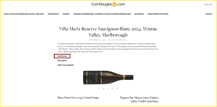 2024年份还荣获Cameron Douglas 94高分及IWC、世界长相思盲品赛两大金奖。
