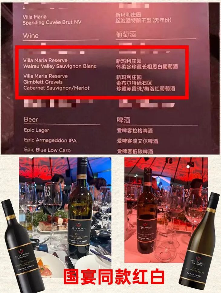 2025年6月13日,我国总理对新西兰进行正式访问,在奥克兰博物馆举办的晚宴上,Villa Maria共有三款精品酒杯选入晚宴酒单:红葡萄酒Gimblet Gravels赤霞珠梅洛、白葡萄酒Wairau Valley霞多丽及干型特酿起泡酒Sparking Cuvee Brut。