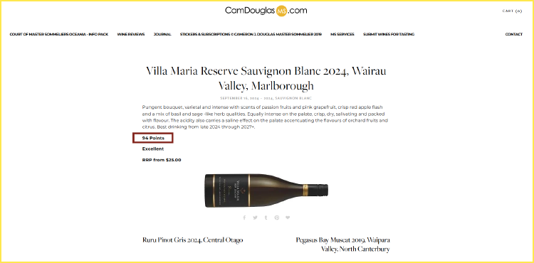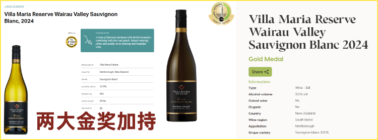 晚宴同款!新玛利酒庄怀劳谷珍藏长相思白葡萄酒 Villa Maria Reserve Wairau Valley Marlborough Sauvignon Blanc 2024