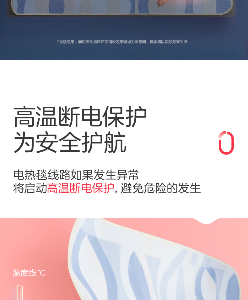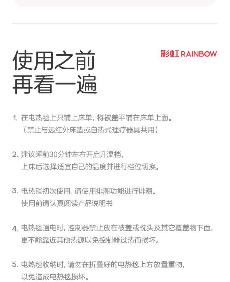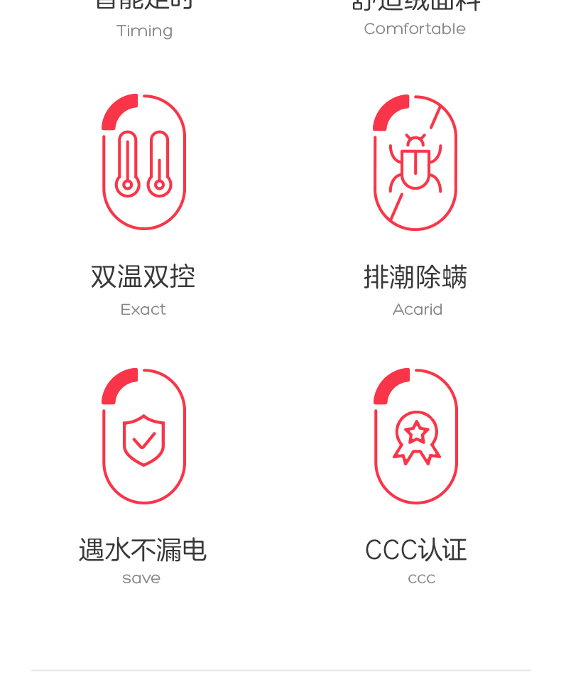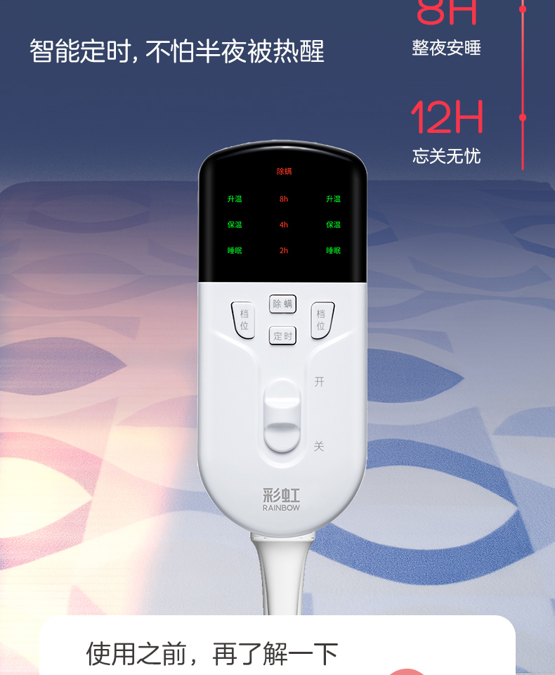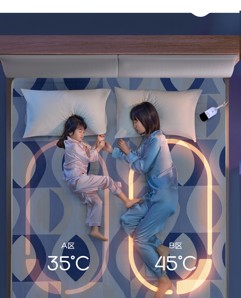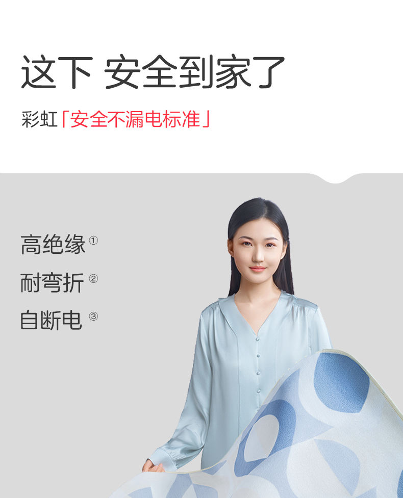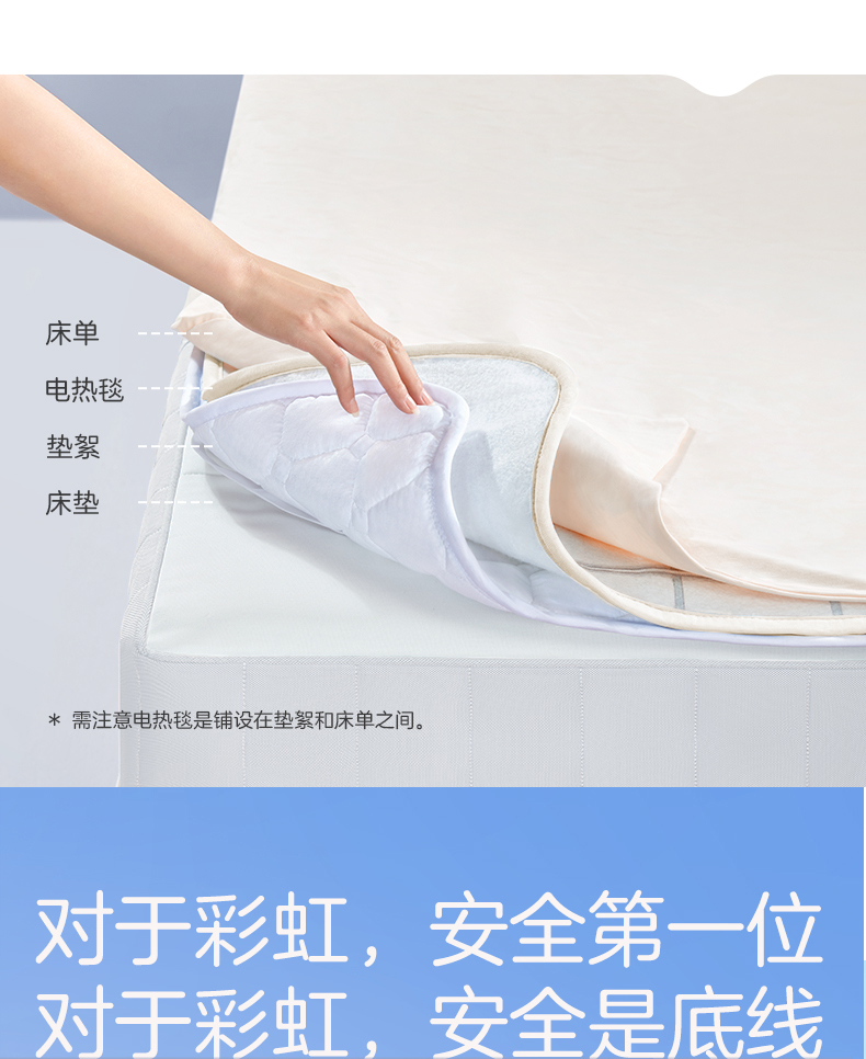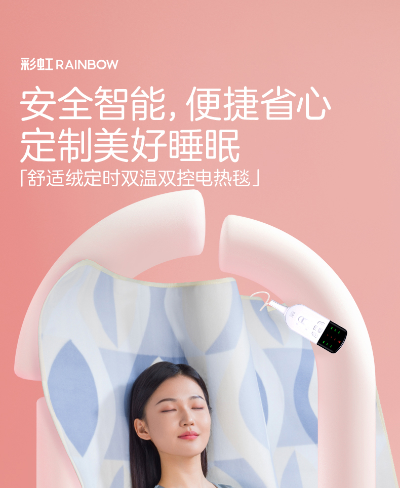 彩虹电热毯(宽1.8*长2.0米)双控双温特大宽幅舒适绒双人电热毯1538AA【开关、花色随机】