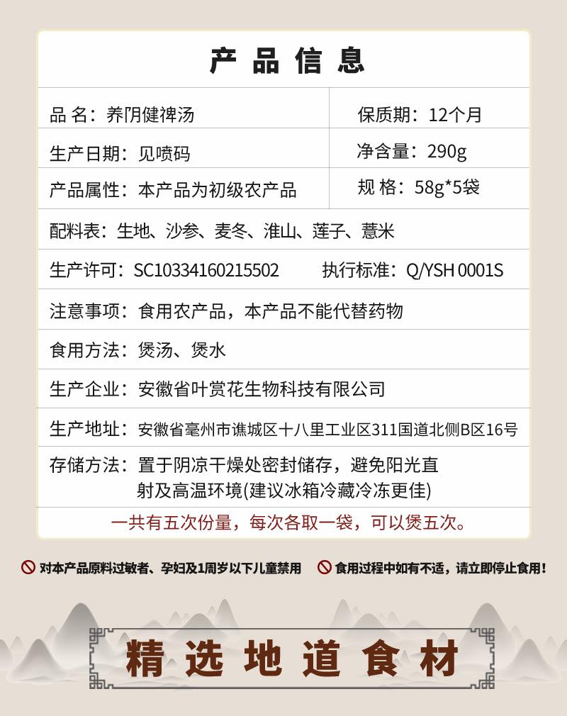 【养阴健月卑汤】天然营养沙参麦冬怀山莲子滋补养生煲汤优选