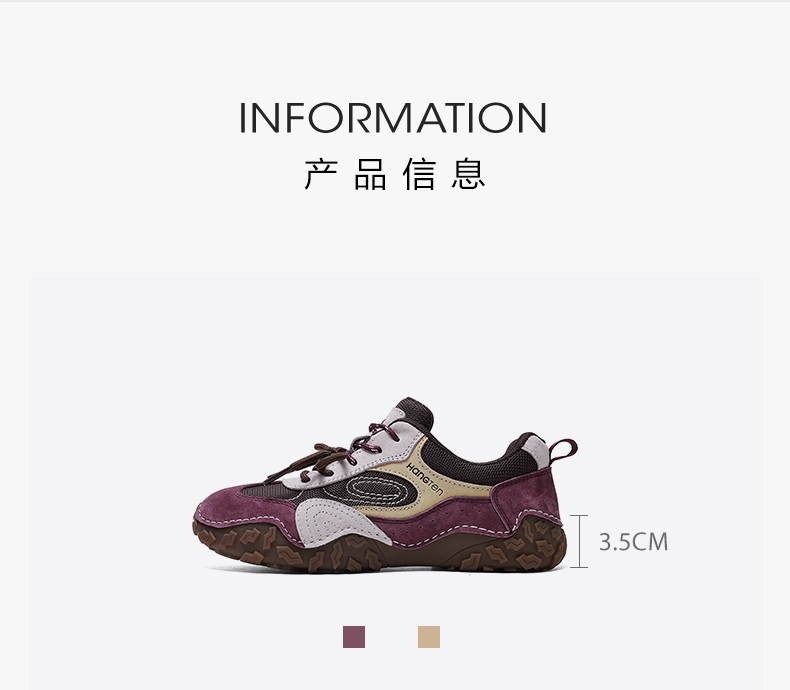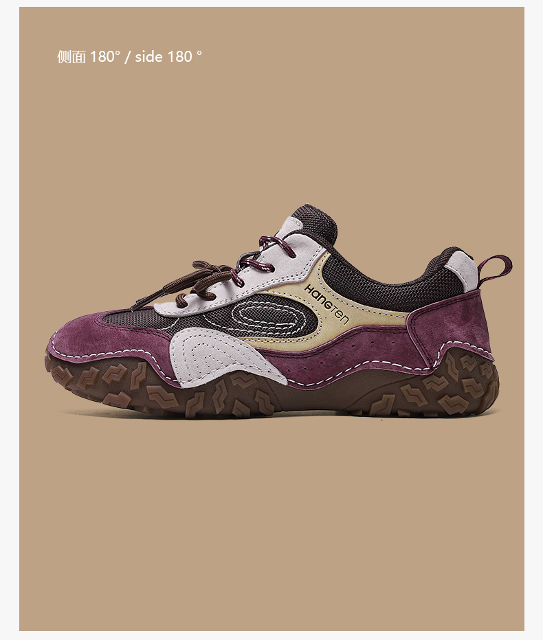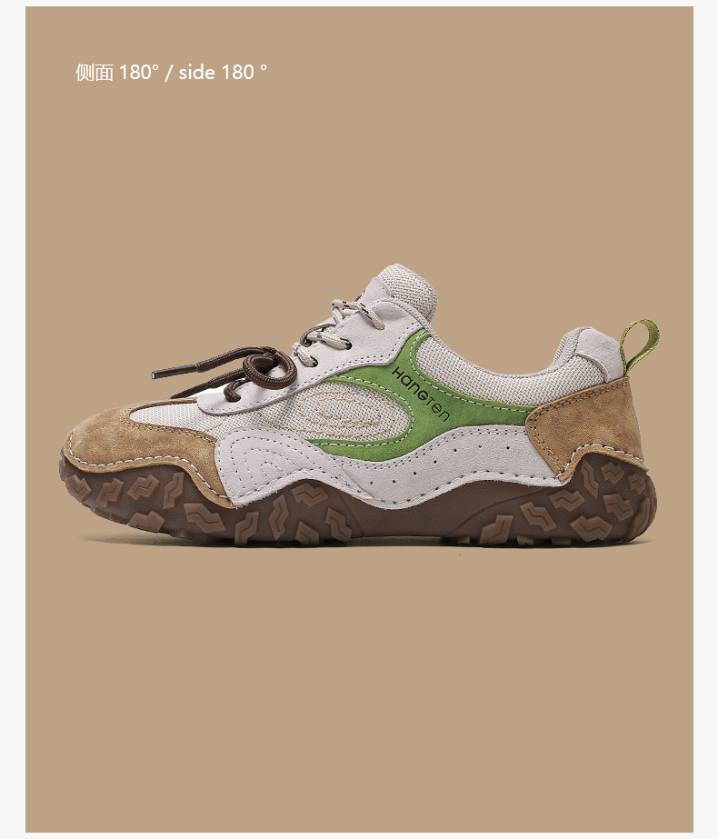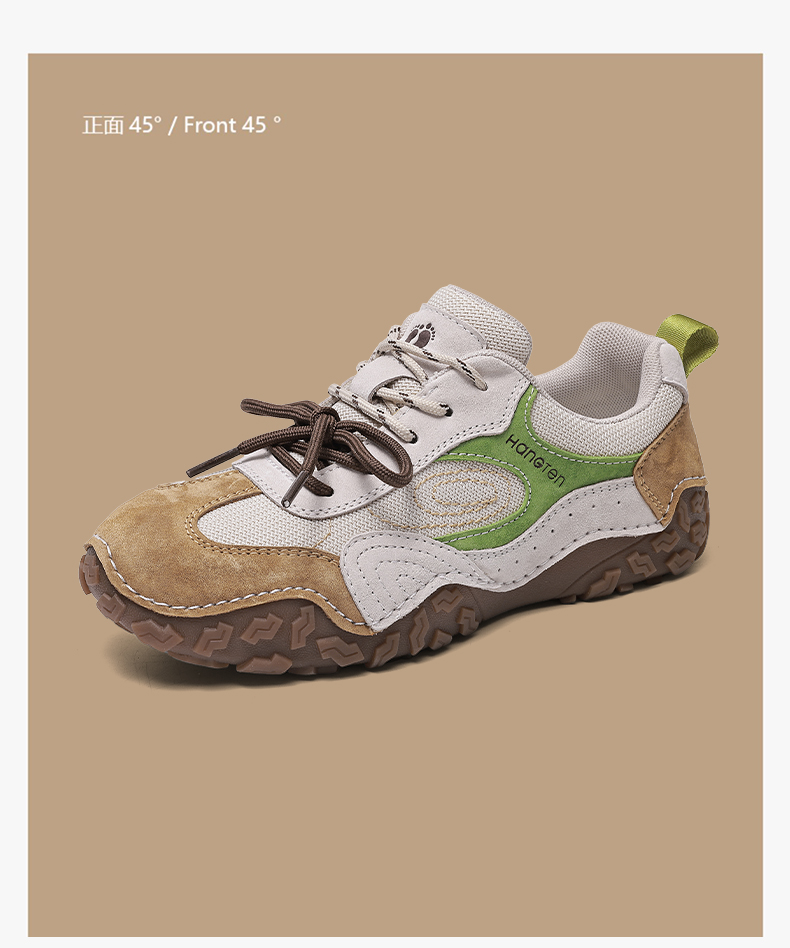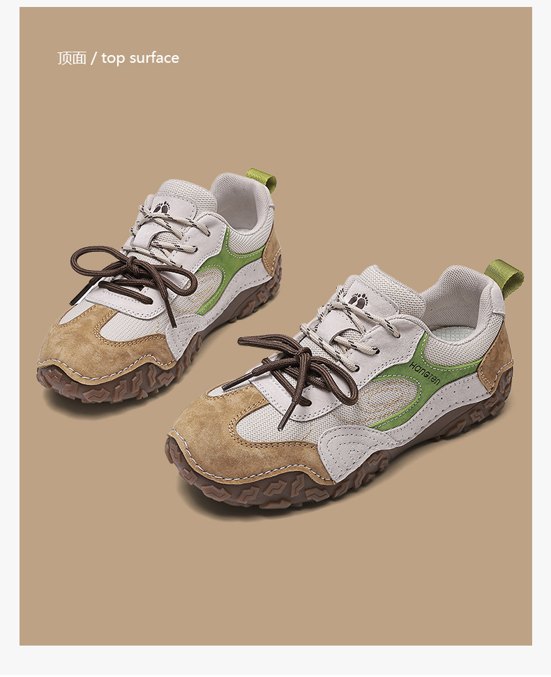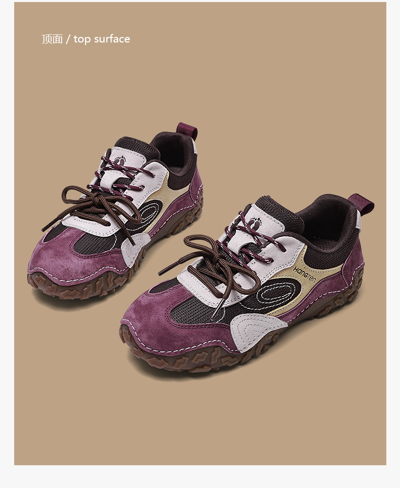 HANGTEN欢腾女士真皮软底轻便徒步休闲复古德训鞋运动鞋F5293013DD