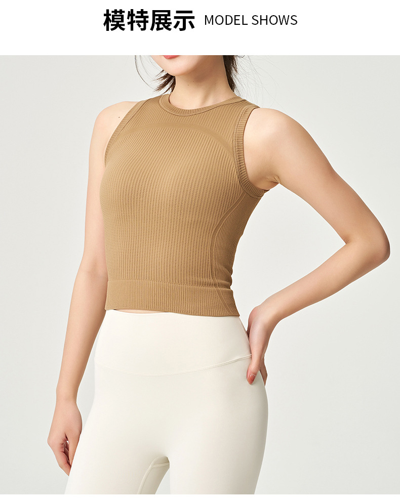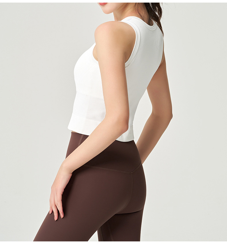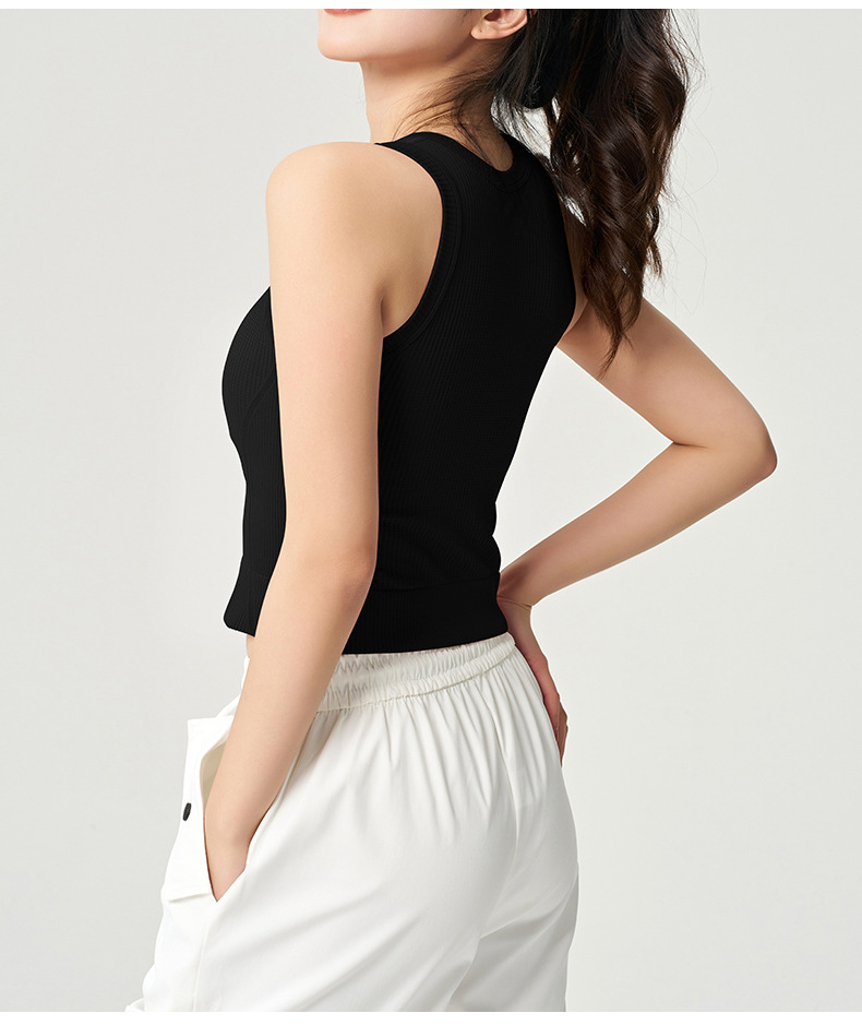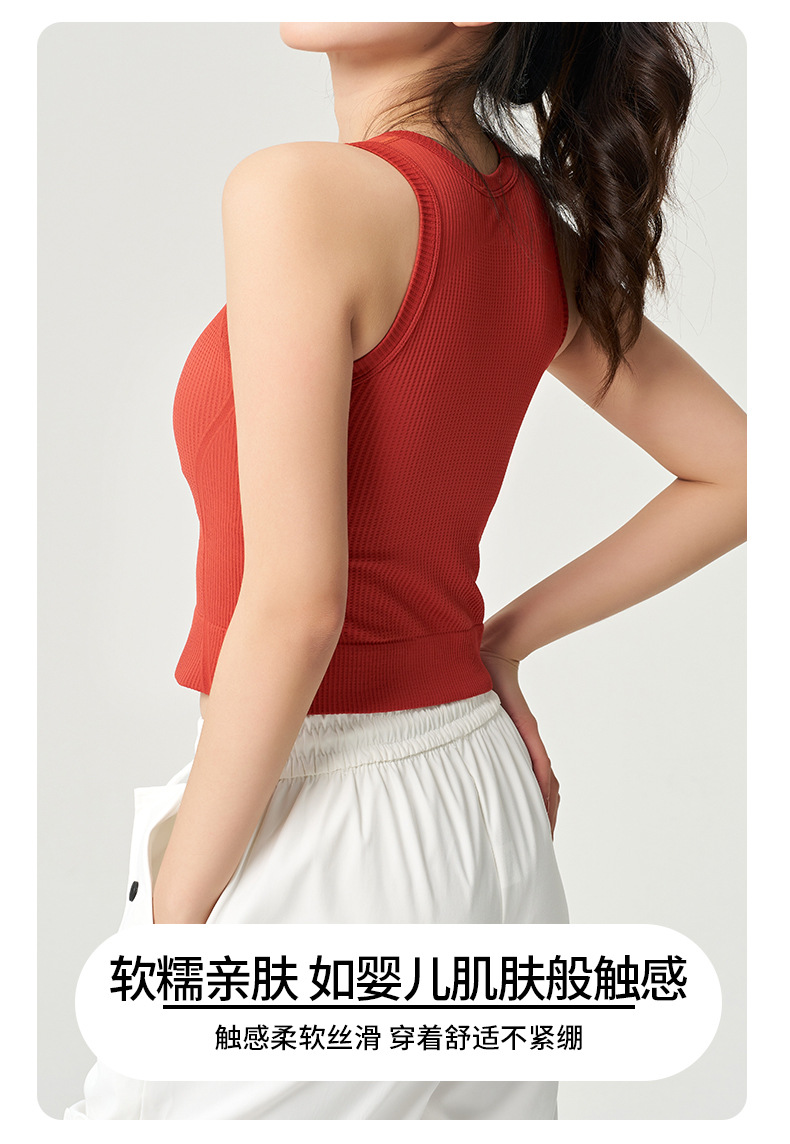 【路路精选】运动瑜伽外穿圆领收腰轻薄透气无袖含胸垫女螺纹背心