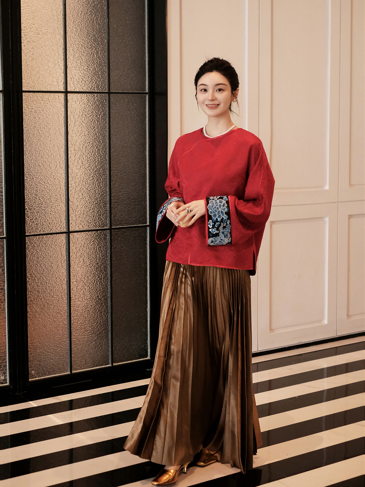 盛唐牡丹 | 缠枝喜鹊纹系带上衣