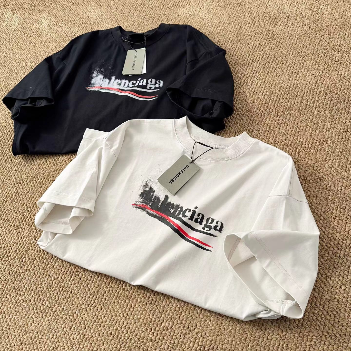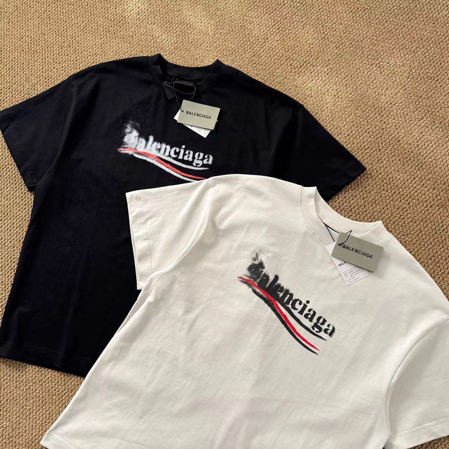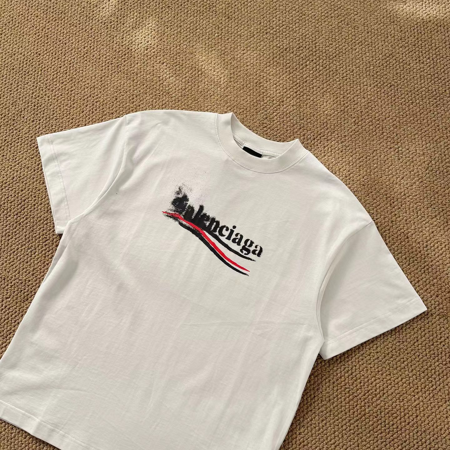 新款模糊喷洒可乐印花短袖T恤 又是今年的一大爆款 对版定织定染280g面料+对版配套螺纹零色差 高品质 男女同款