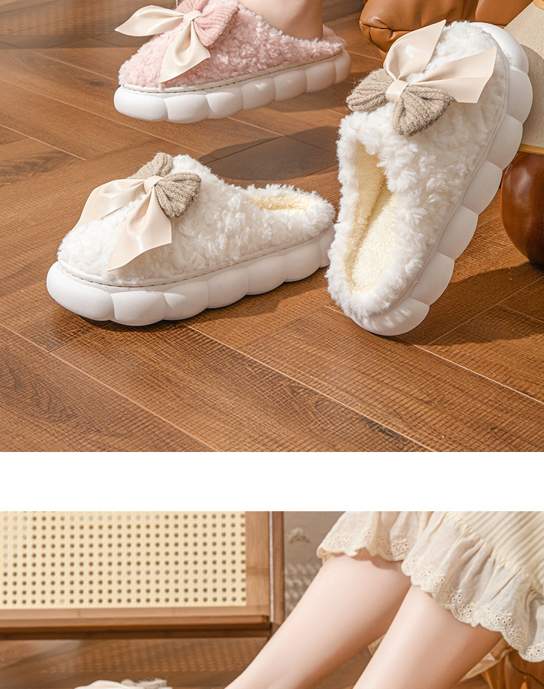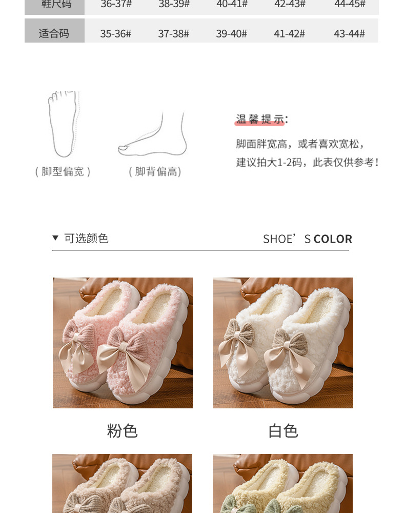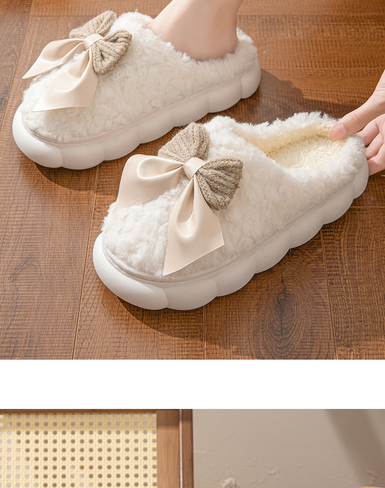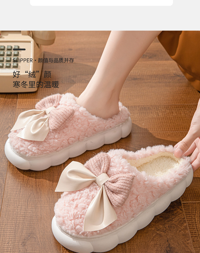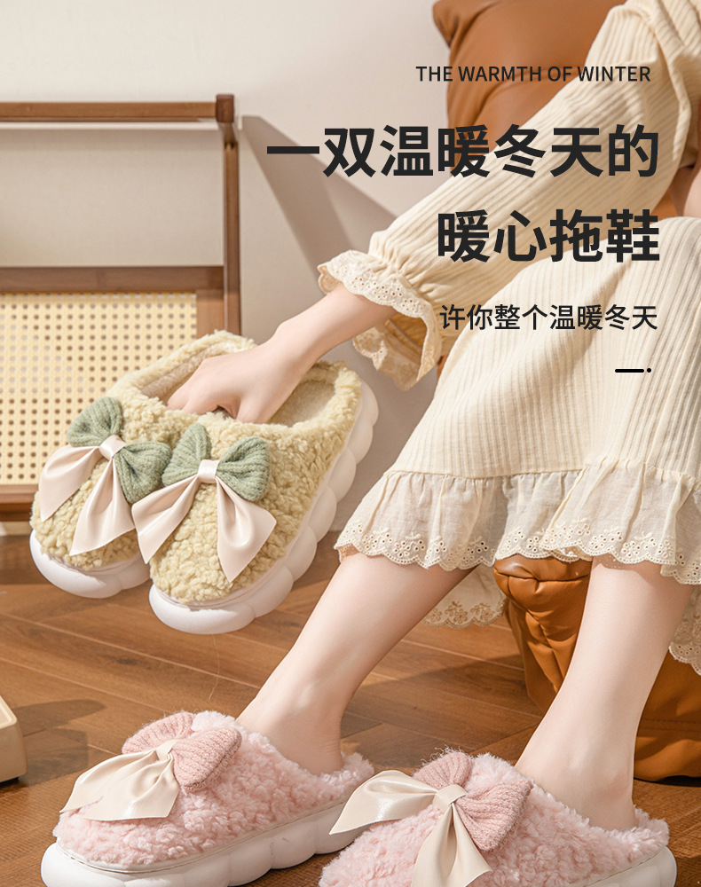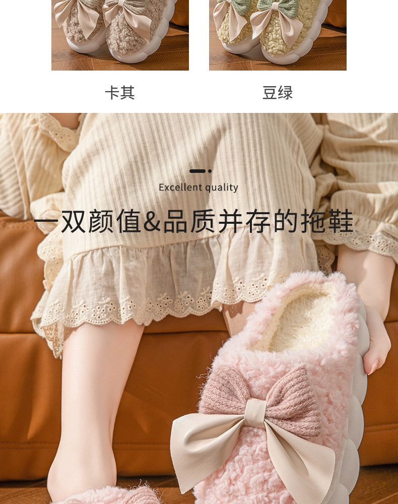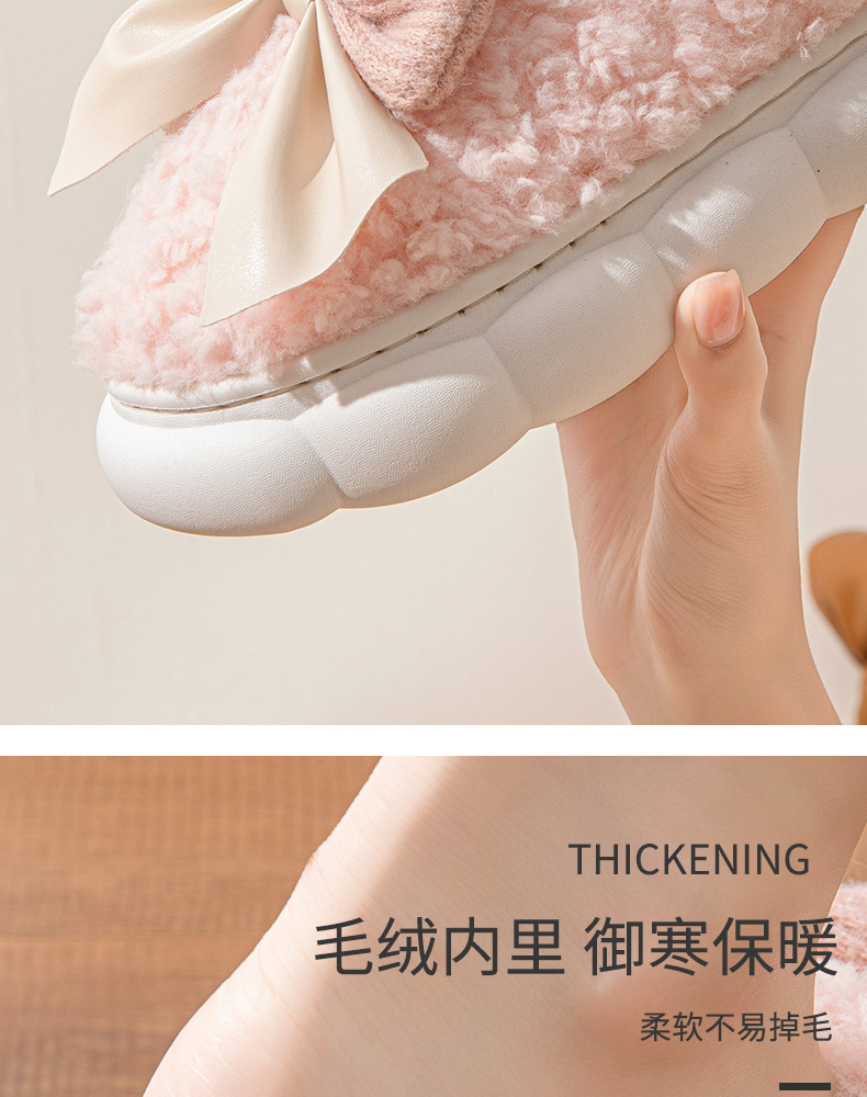 【柔软一下,跟寒冷说byebye~】许你整个温暖冬季蝴蝶结踩屎感棉拖鞋女,加厚毛绒饱满立体舒适亲肤保暖,厚底室内轻便毛绒保暖毛托月子鞋QQ