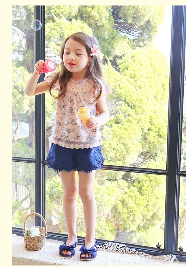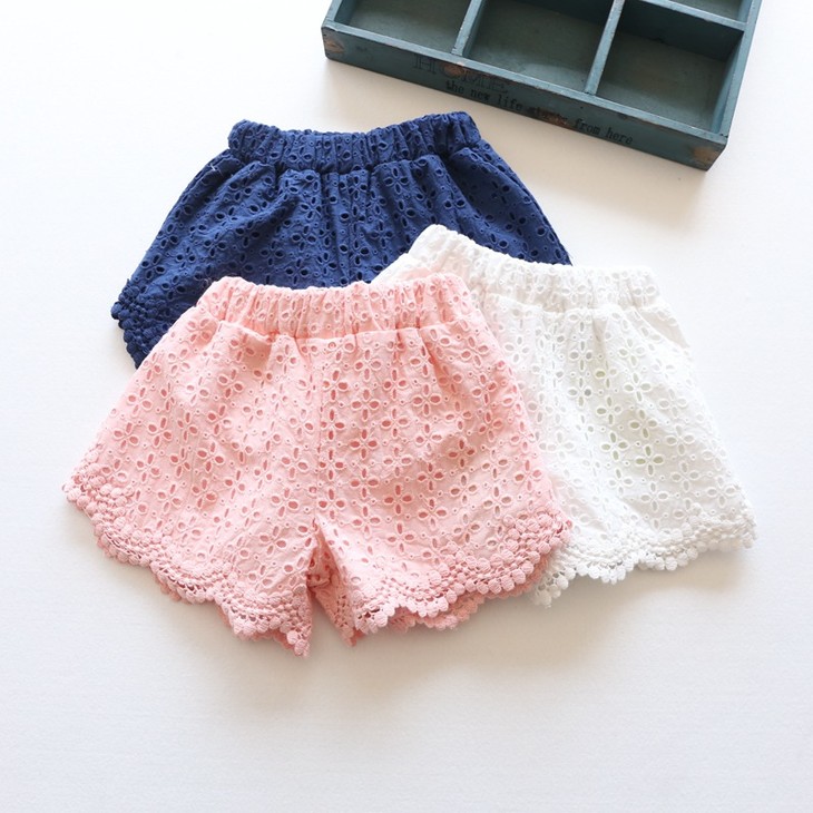 【女童裤子】童装儿童短裤韩版夏季新纯棉蕾丝女童热裤公主百搭镂空薄