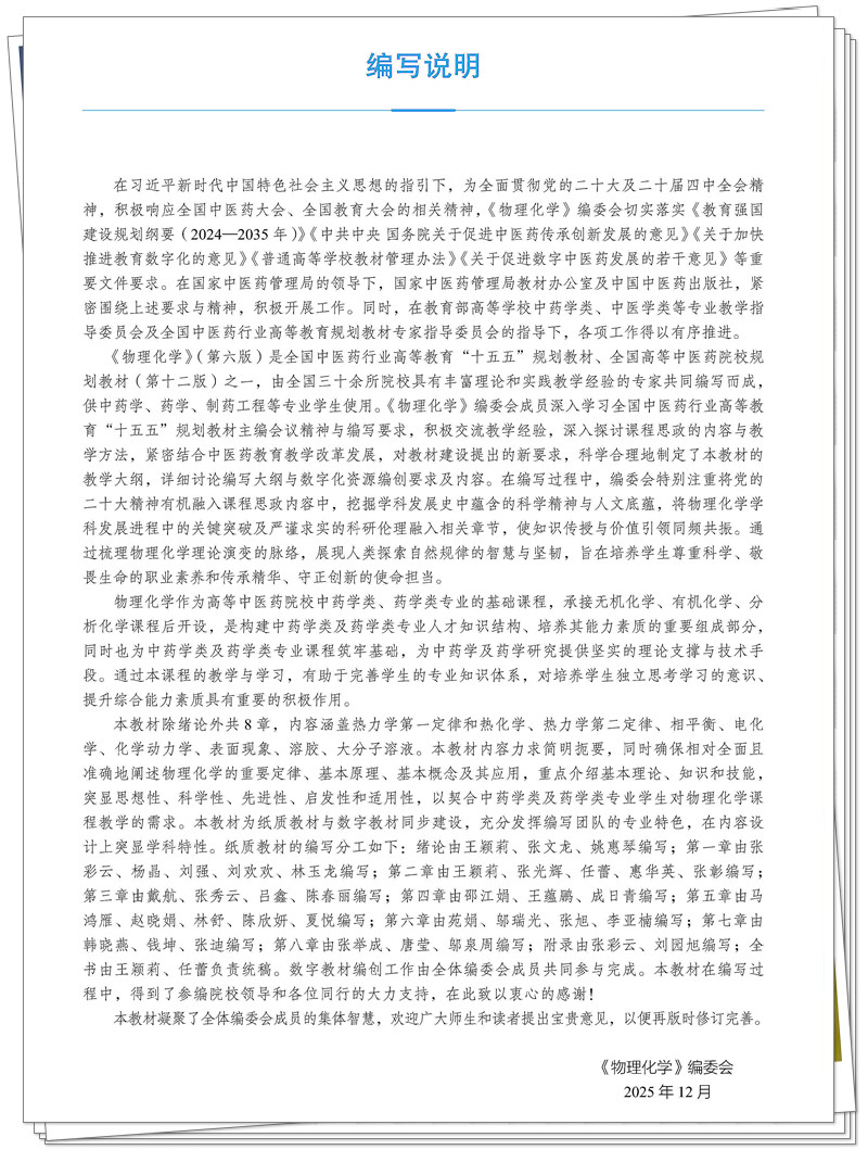物理化学 王颖莉 张彩云 主编 第六版 全国中医药行业高等教育十五五规划教材 第十二版 中国中医药出版社
